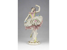 Régi, hibátlan állapotú, jelzett német Schaubachkunst porcelán primadonna, táncosnő figura. Sminkelő fiatal nő kezében tükörrel.