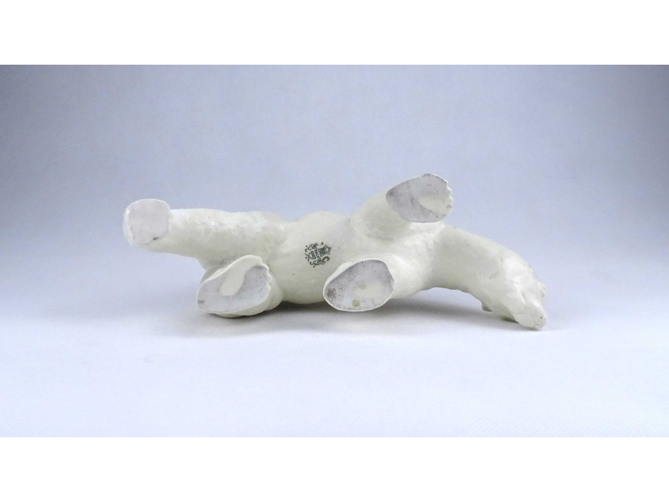 Régi, szép állapotú, jelzett Schaubach Kunst porcelán jegesmedve figura. A bal első és a jobb hátsó lába restaurátor által szakszerűen javított.