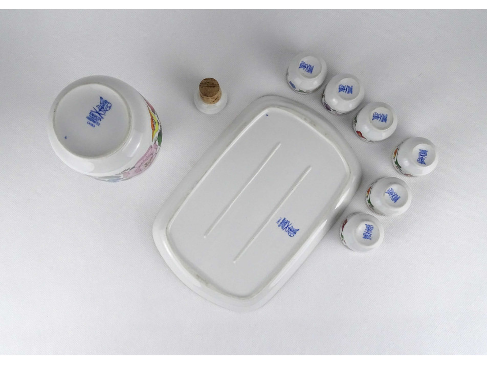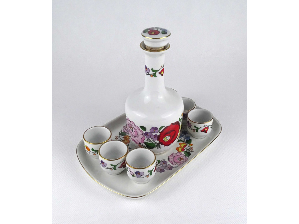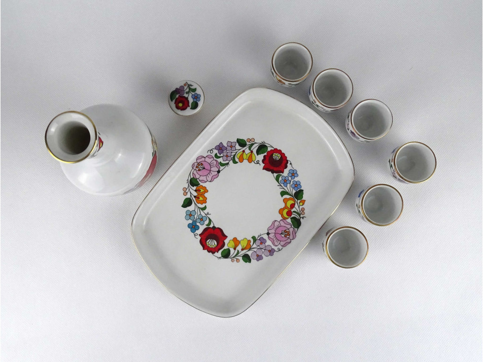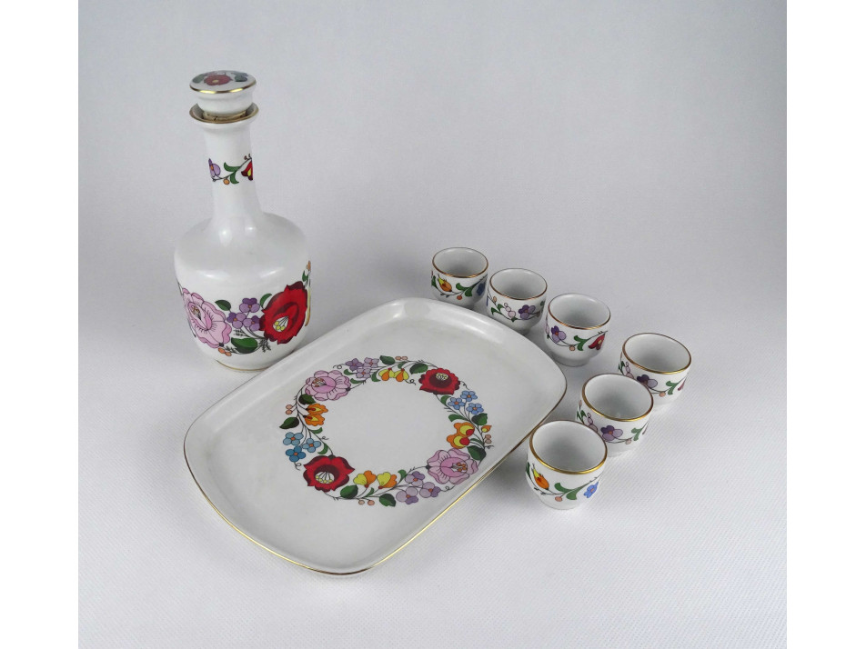 Hibátlan állapotú, kalocsai mintás porcelán pálinkás készlet.