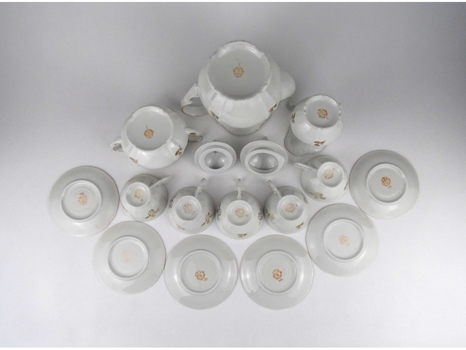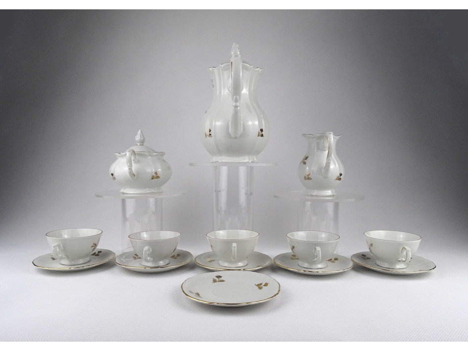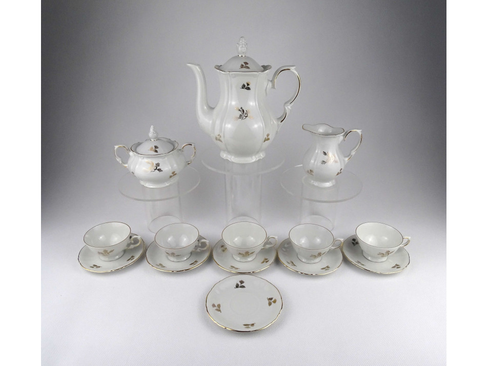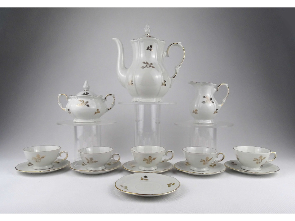 Régi német, 5 személyes Roschütz fehér arany porcelán kávészkészlet 14 darab