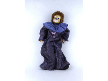 Gyönyörű állapotú, teljesen felöltöztetett, porcelán baba, állványon. Feje és végtagjai mozognak.