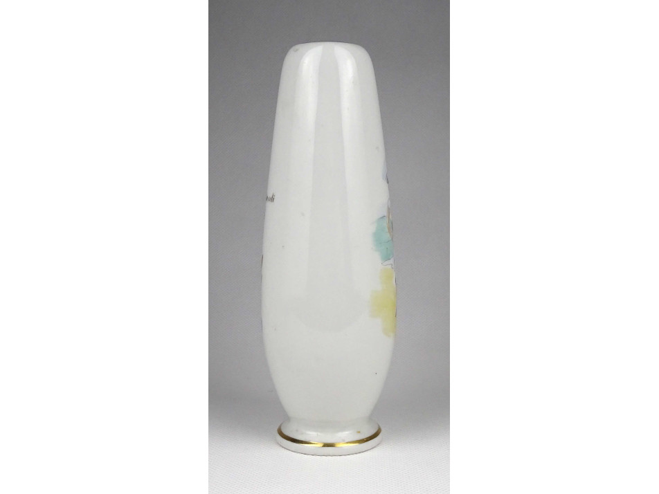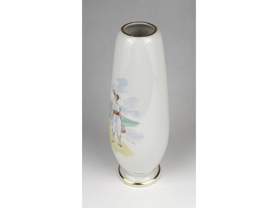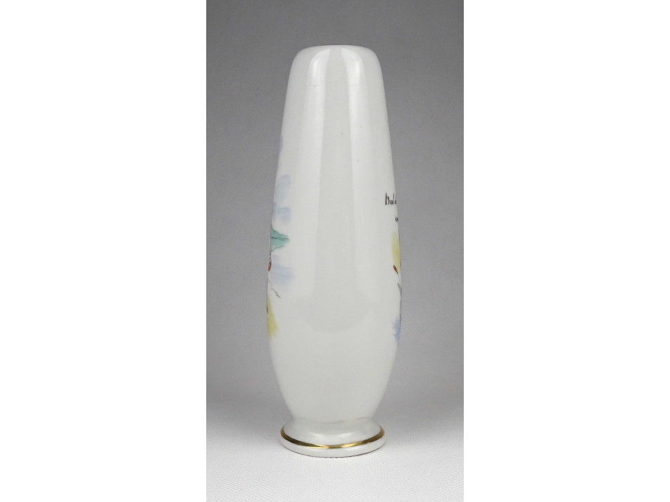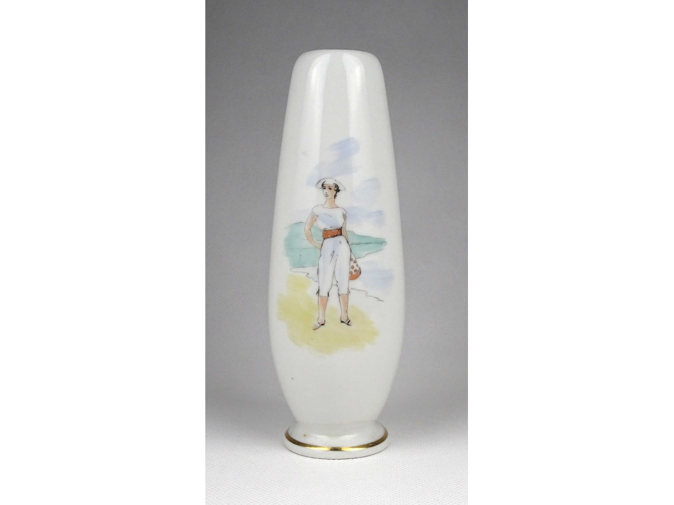 Hibátlan állapotú, jelzett, BALATONFÜREDI EMLÉK feliratú Aquincum porcelán váza, kézi festéssel készült nőalakkal és arany szegéllyel díszítve.