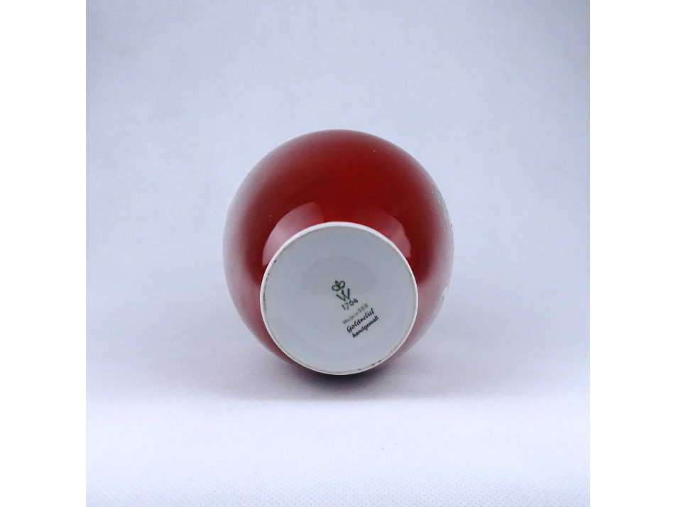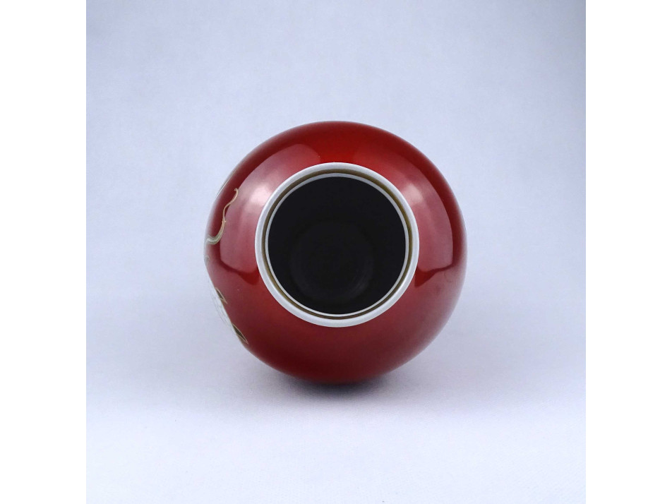 Régi vörös sárkány mintás Wallendorf porcelán váza gömbváza 18.7 cm