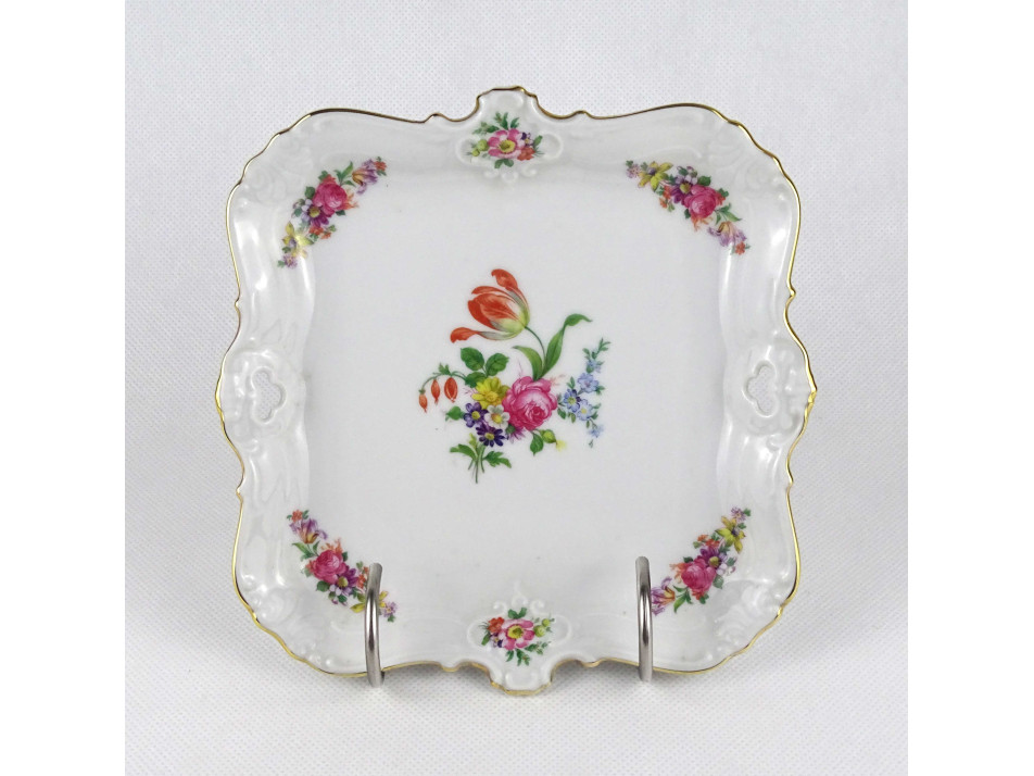 Régi négyzet alakú virágmintás Seltmann Weiden porcelán tál 17.7 x 17.5 cm