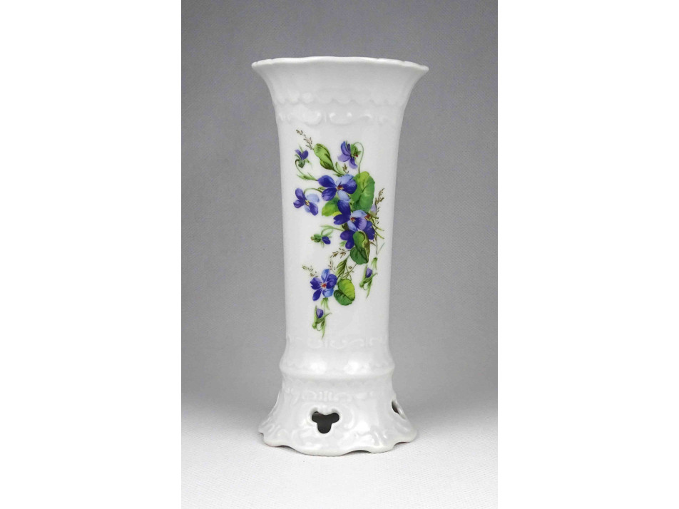 Hibátlan állapotú, jelzett, kék virágmintás, áttört talpú Seltmann Weiden porcelán kis váza, díszváza.