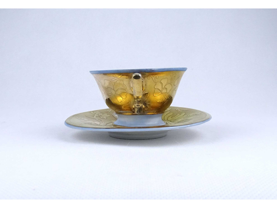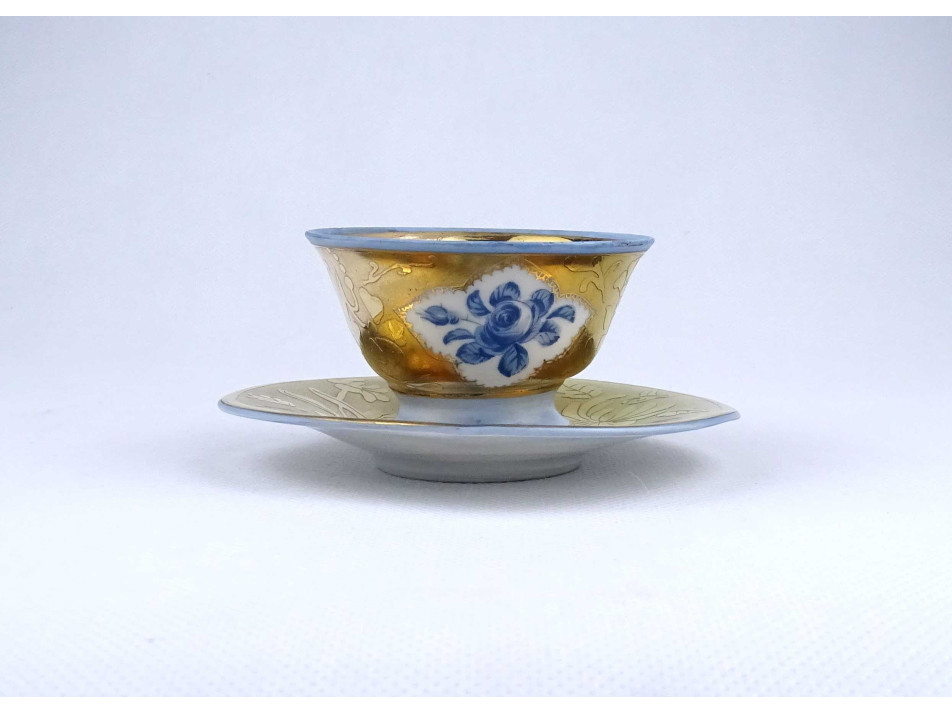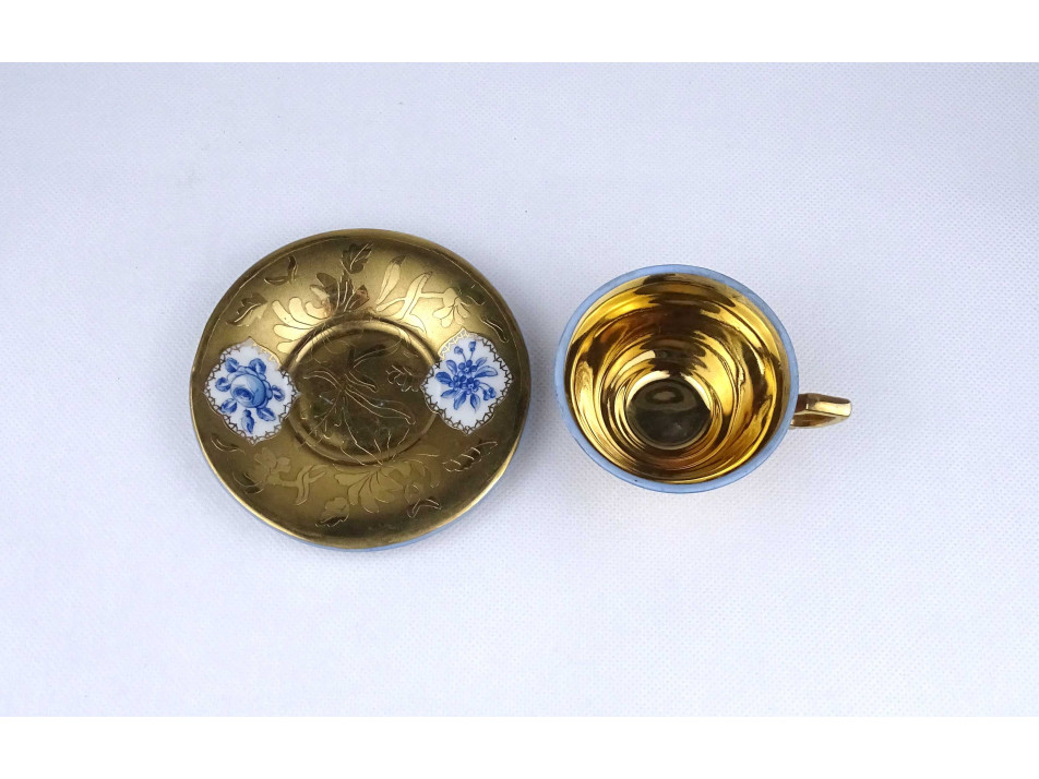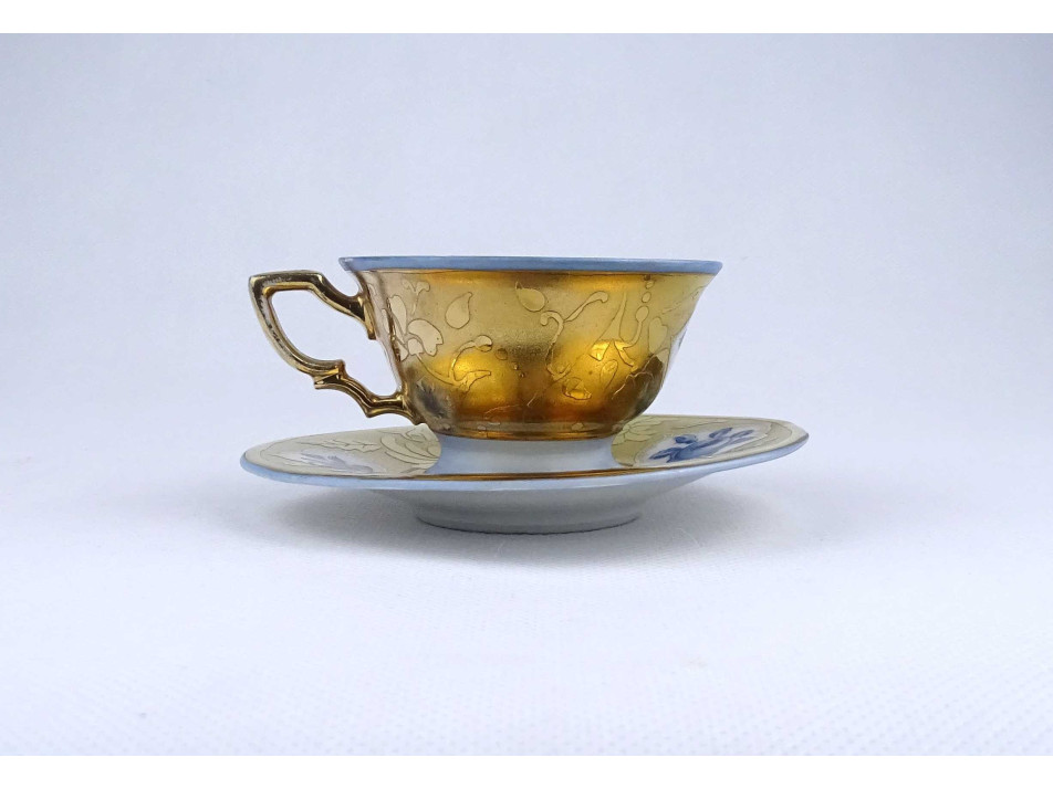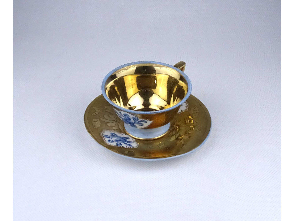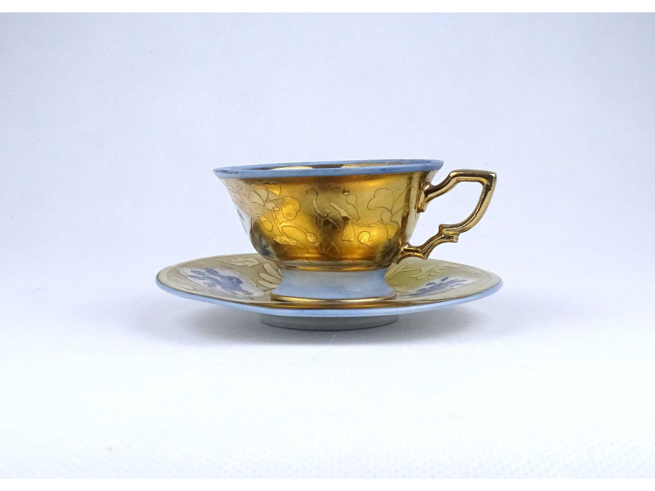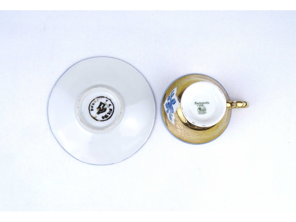 Régi, hibátlan állapotú, jelzett, vastagon aranyozott porcelán kávés csésze és alátét tányér.