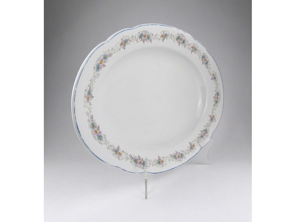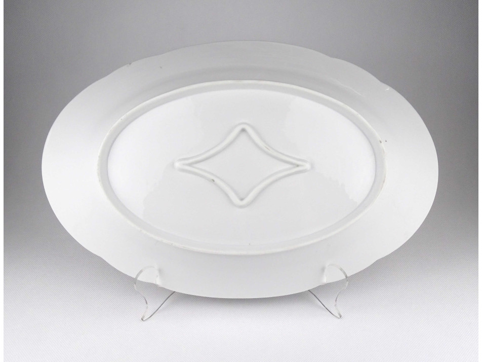 Régi, nagyméretű, kék színű virágokkal díszített, jelzett Fischer & Mieg Pirkenhammer porcelán pecsenyéstál, kínáló tál.