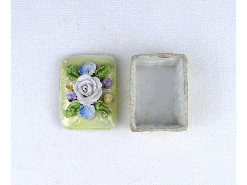Régi kisméretű plasztikus virágdíszes porcelán bonbonier gyűrűtartó