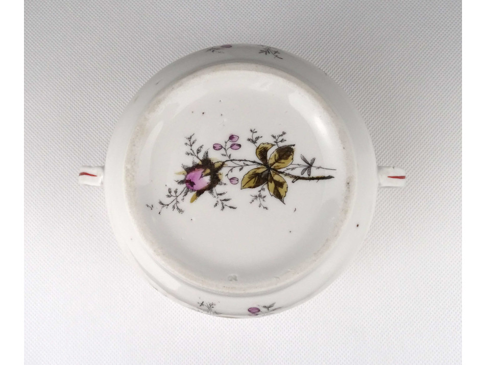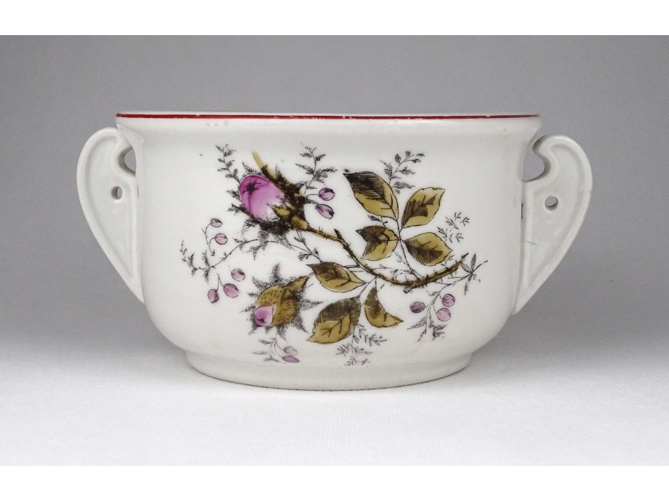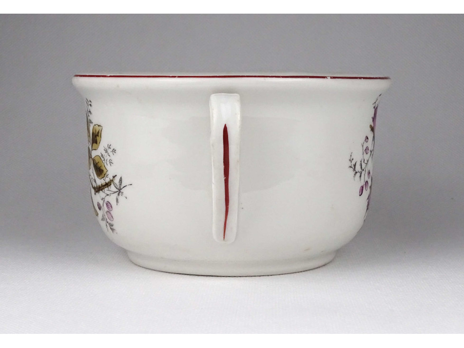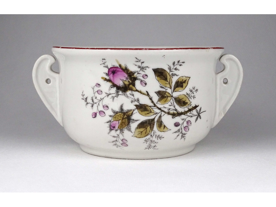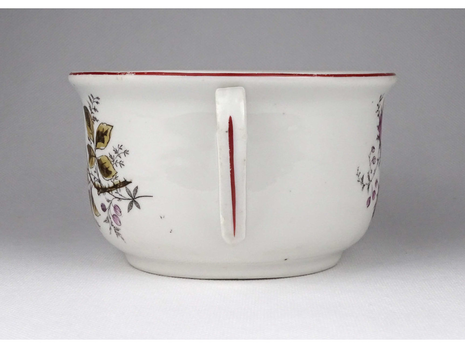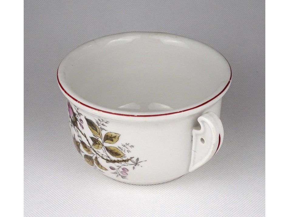 Régi, hibátlan állapotú, virágmintás porcelán koma bögre, komatál.