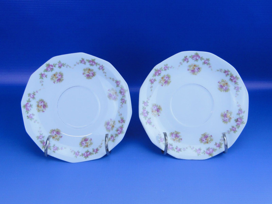 2 db egyforma apró virágmintás szép állapotú jelzett osztrák porcelán teáscsésze alátét tányér. Alján zöld színű koronás jelzés: