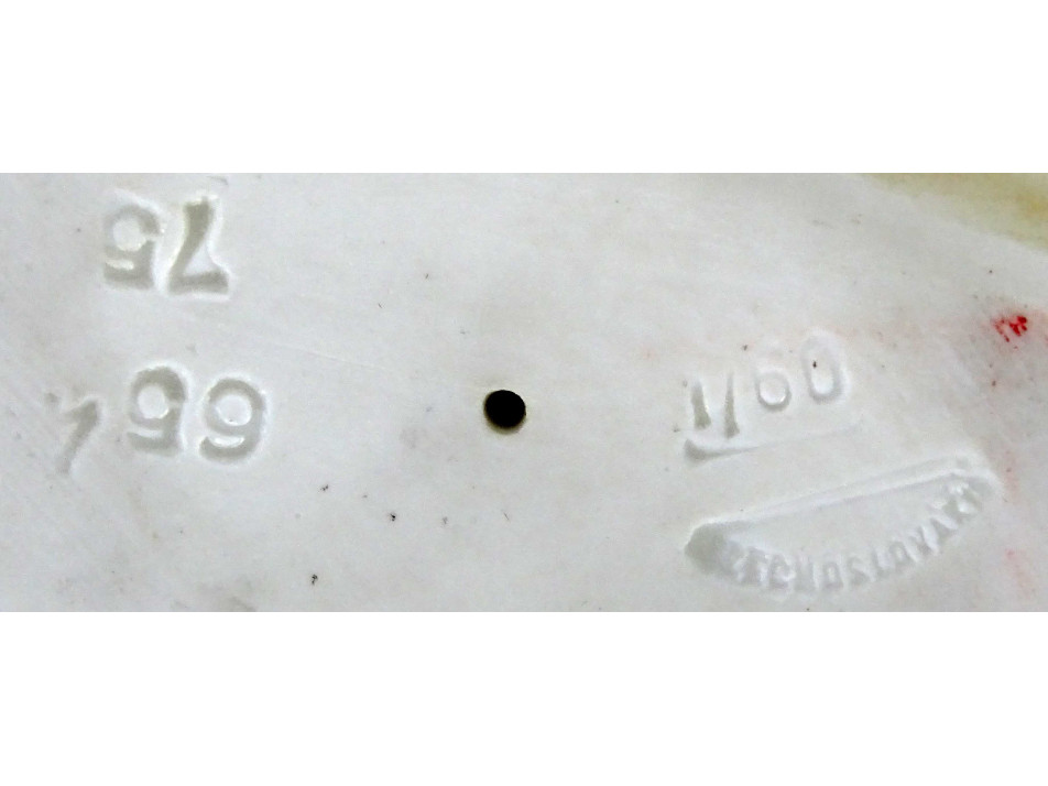 Régi, hibátlan állapotú, ülő, kézzel festett cseh porcelán medve figura. Alján mélynyomott jelzés és formaszám: I/60 CZECHOSLOVAKIA 654 75