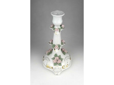 Régi, hibátlan állapotú, barokkos formavilágú porcelán gyertyatartó, rajta sok plasztikus rózsa díszítés. Alján zöld koronás jelzés, lásd fotó.