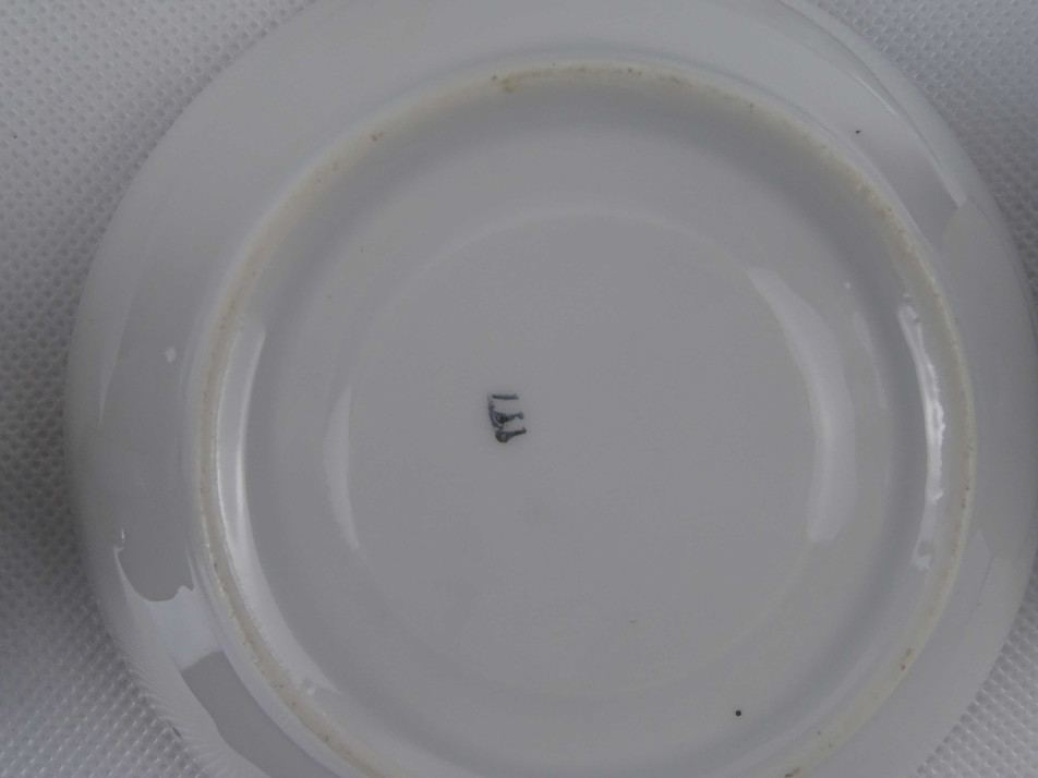 Régi, hibátlan állapotú, jelzetlen, aranyozott szegélyű, rózsamintás porcelán reggeliző készlet, teás vagy kávés készlet. 4 darab
