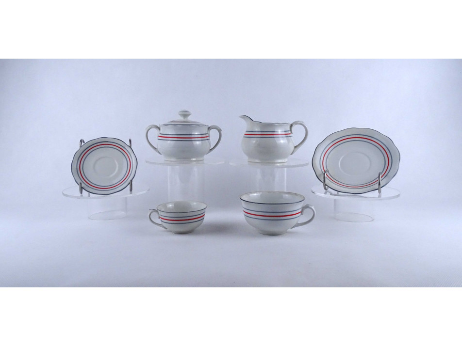 Retro hat személyes csíkos szélű porcelán étkészlet teás és kávés készlet 53 darab