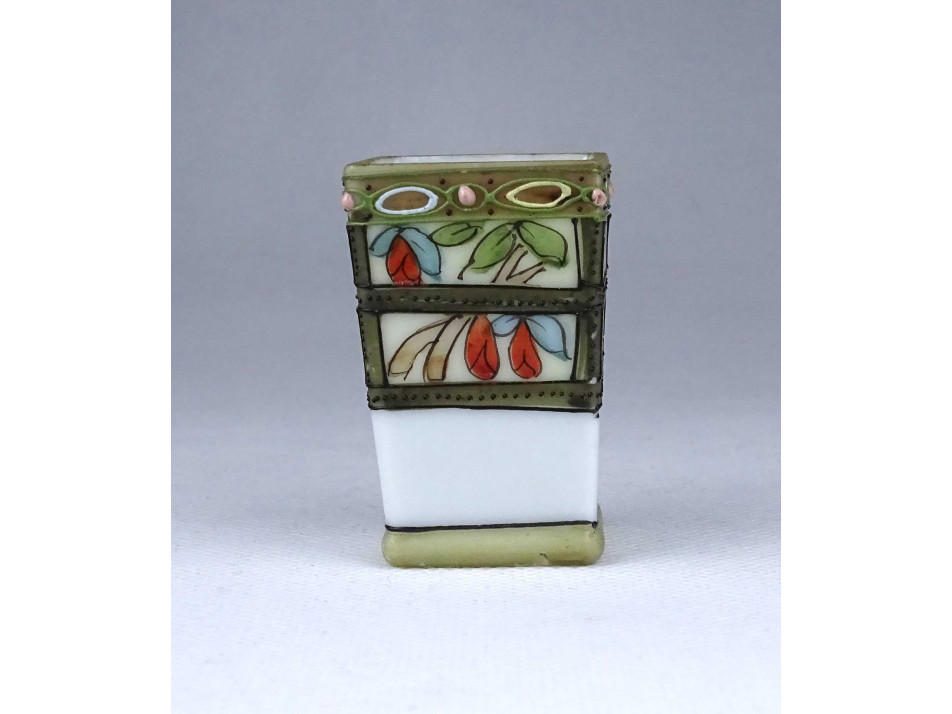 Régi kisméretű szögletes alakú japán porcelán kisváza 5.5 cm
