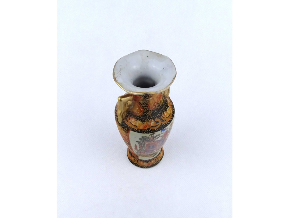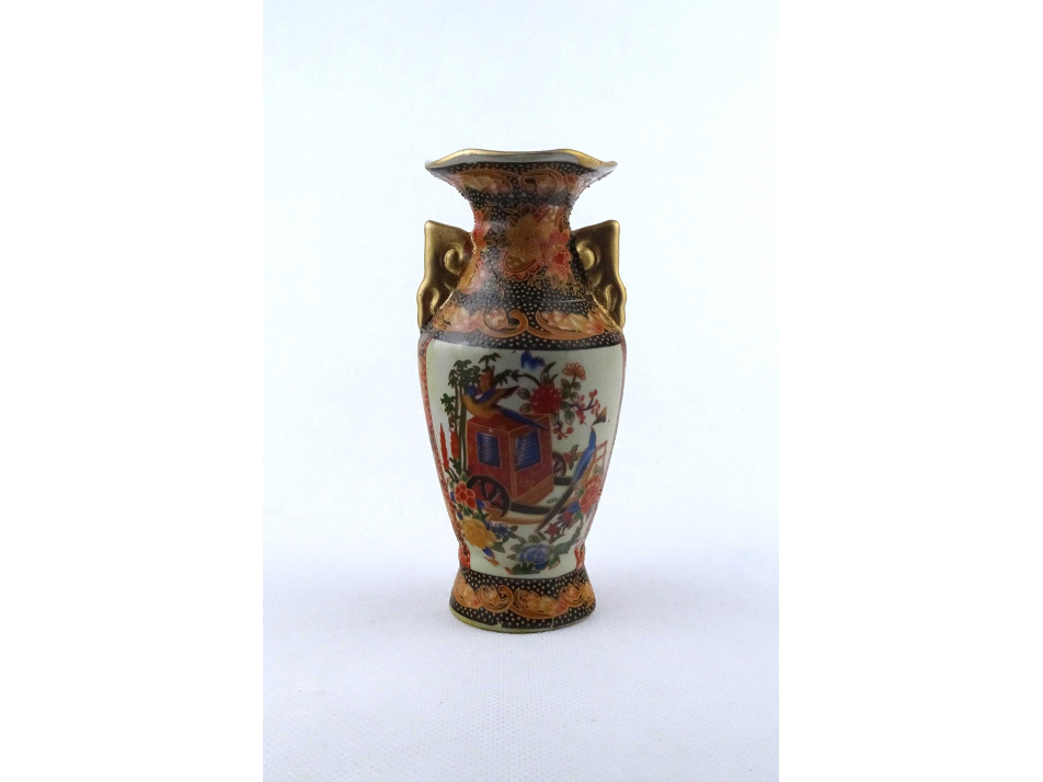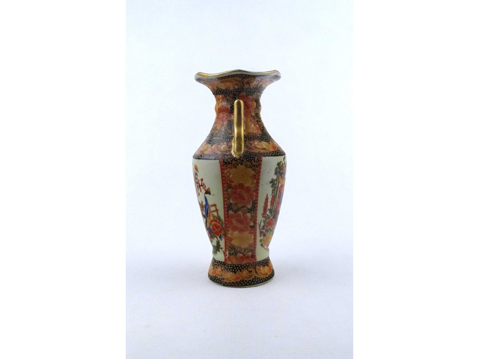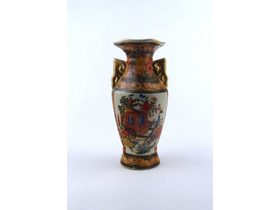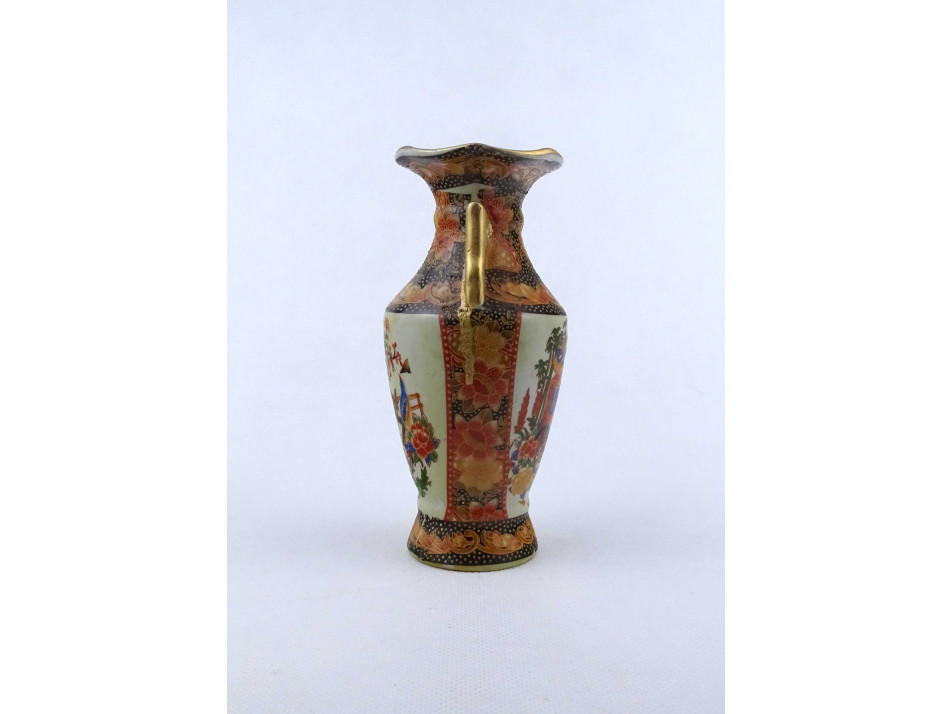 Satsuma jellegű porcelán kis váza 14.8 cm