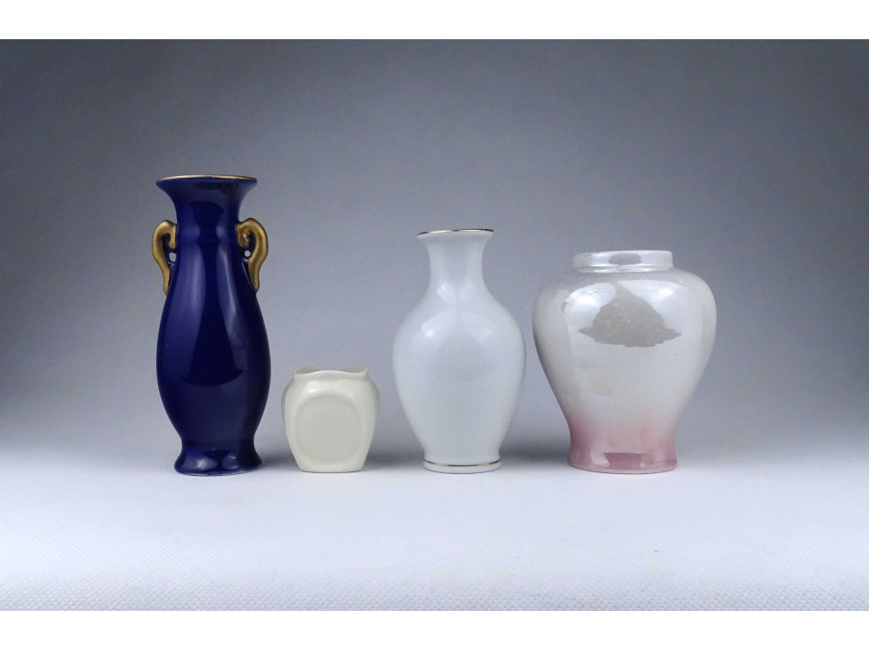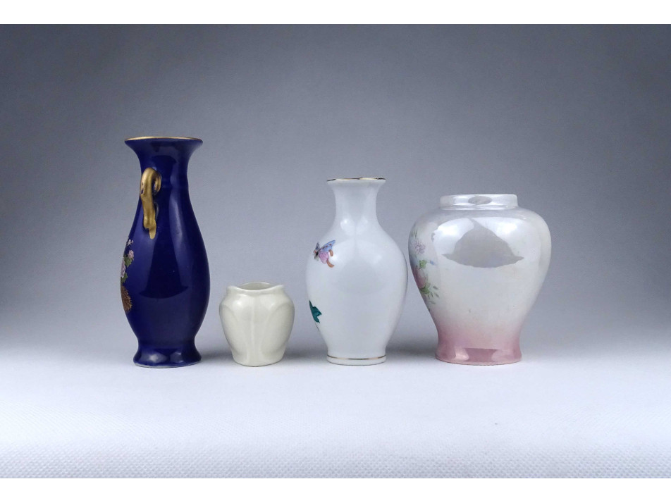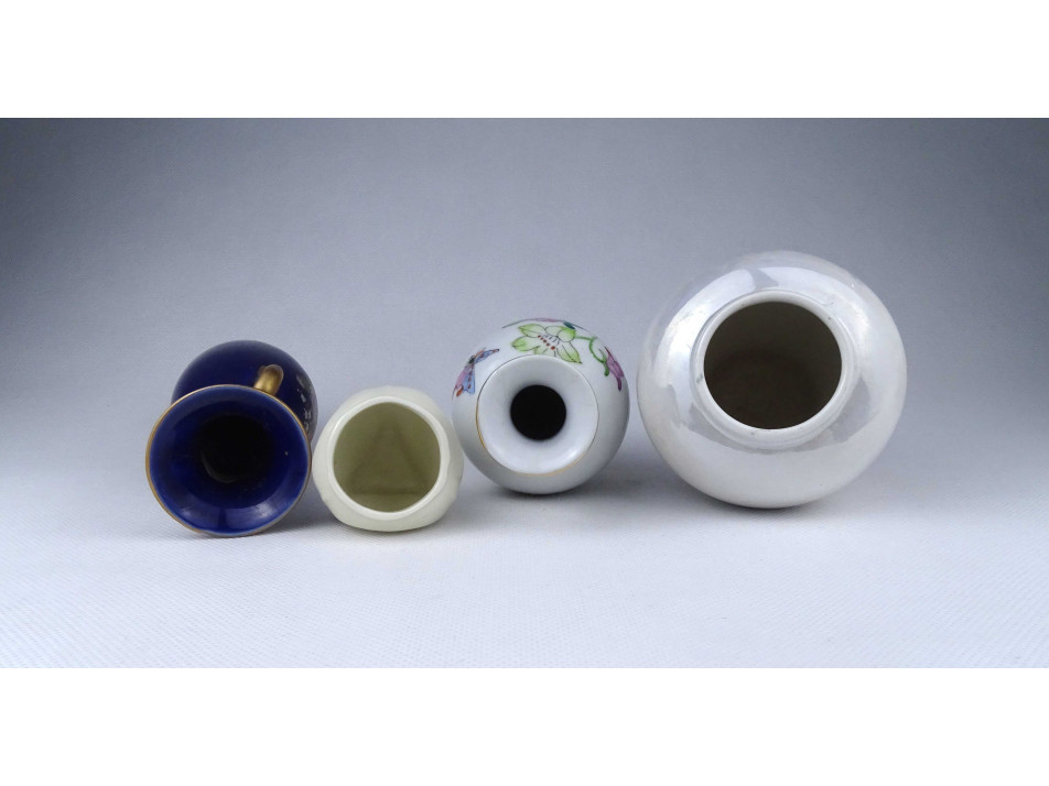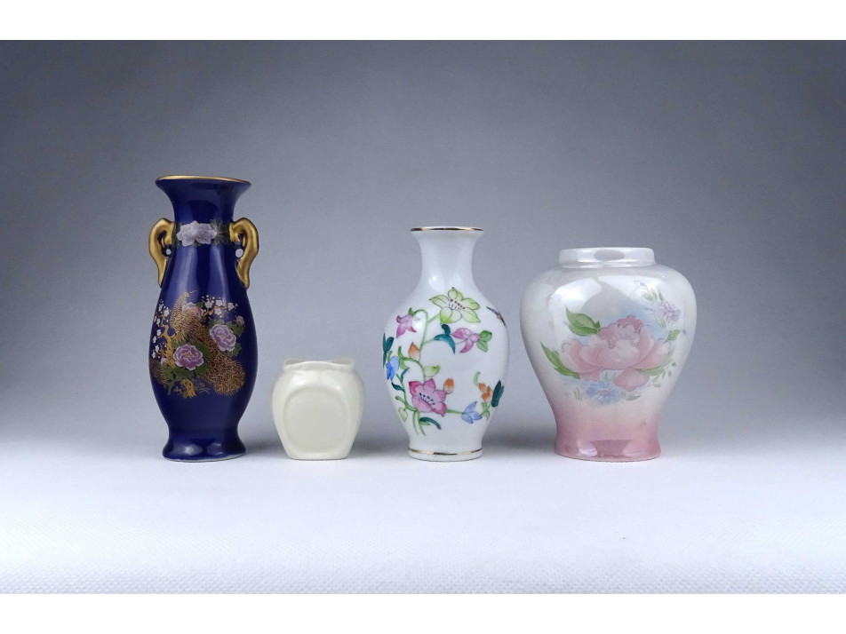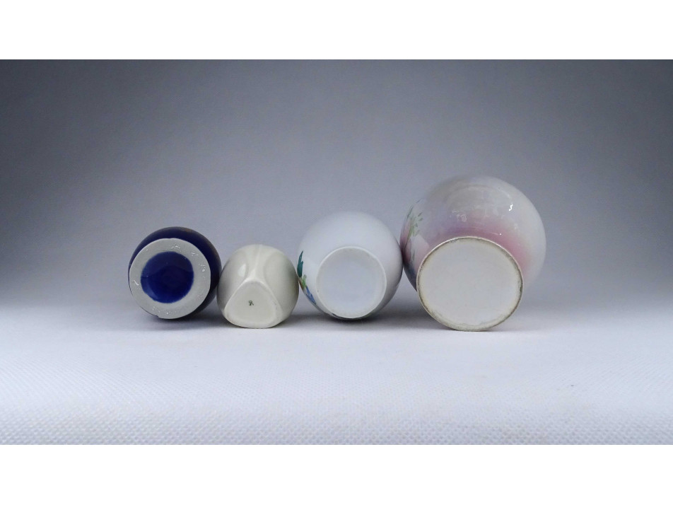 Régi, hibátlan állapotú, kisméretű különböző alakú és díszítésű, jelzetlen porcelán váza csomag, 4 darab egyben.