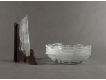 Antik hibátlan állapotú maratott és csiszolt üveg süteményes tányér készlet 6 darab