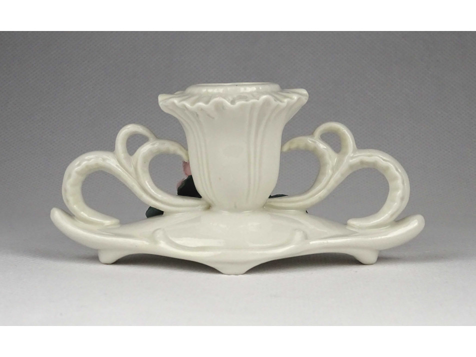 Régi kisméretű ENS porcelán gyertyatartó rózsa díszítéssel