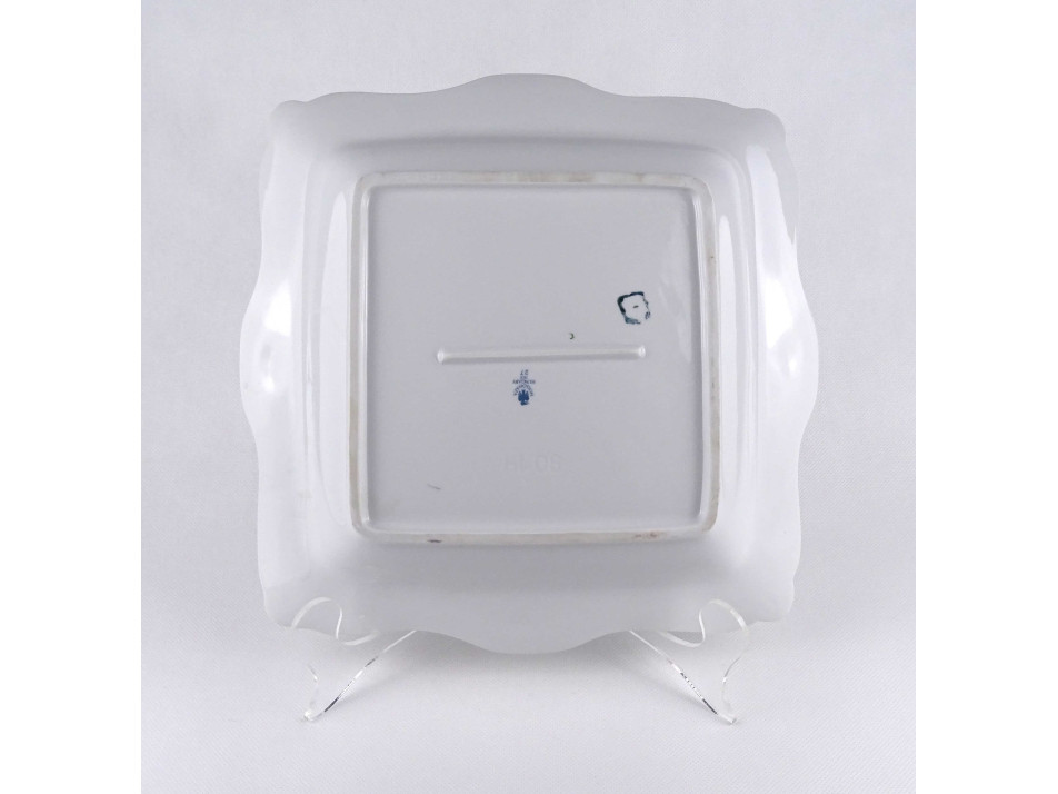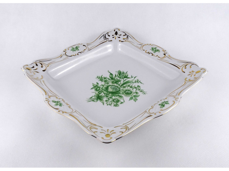 Hibátlan állapotú, gazdagon aranyozott, szögletes alakú, nagyméretű Hollóházi porcelán asztalközép, kínáló tál, gyümölcskínáló. Aranyozása kopásmentes, ajándékba adható!