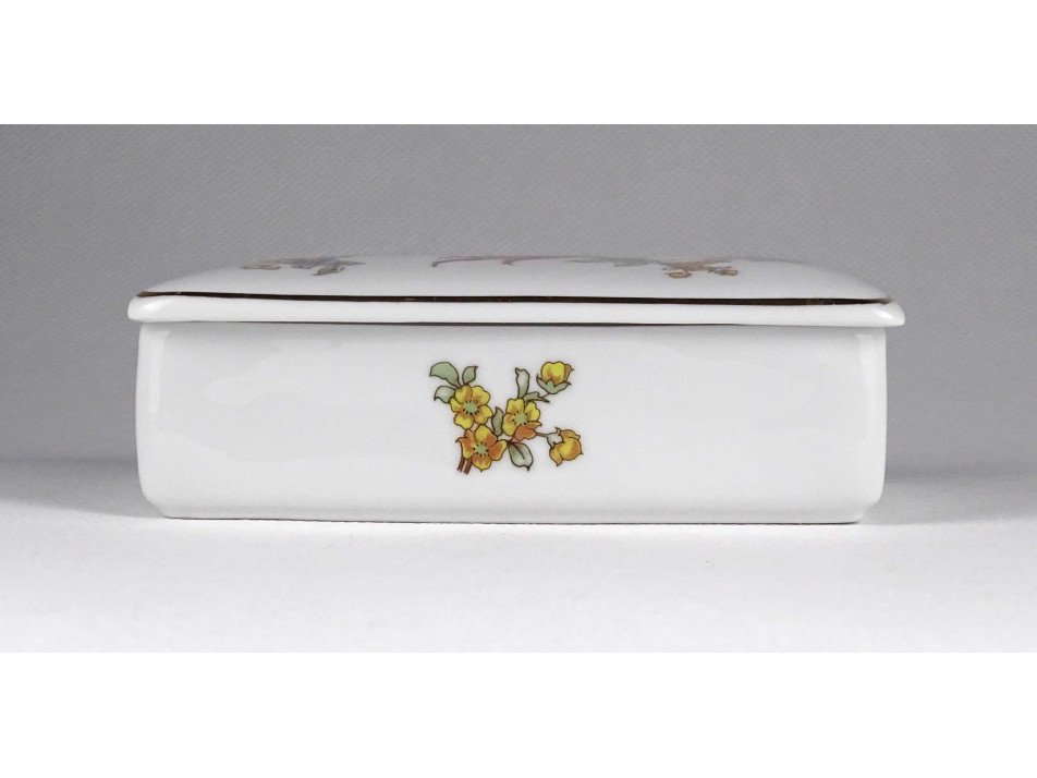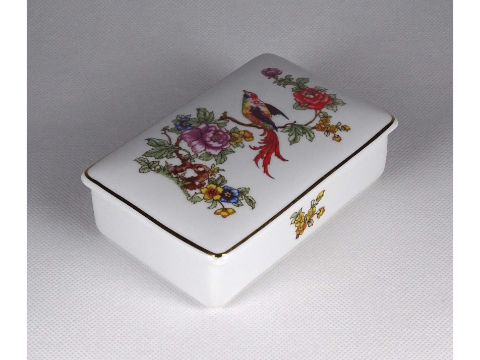 Hibátlan állapotú, paradicsommadár mintás Hollóházi porcelán ékszertartó szelence, bonbonier.