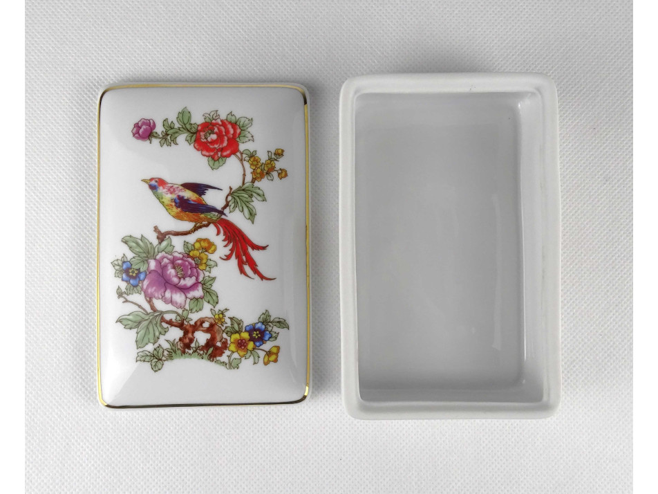Régi paradicsommadár mintás fehér Hollóházi porcelán bonbonier