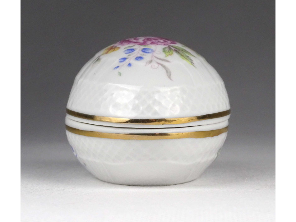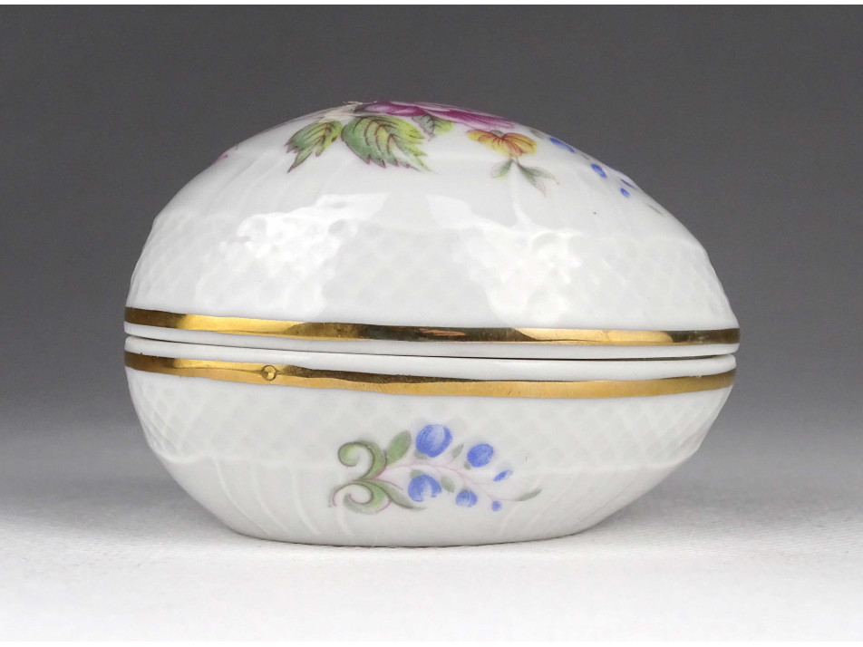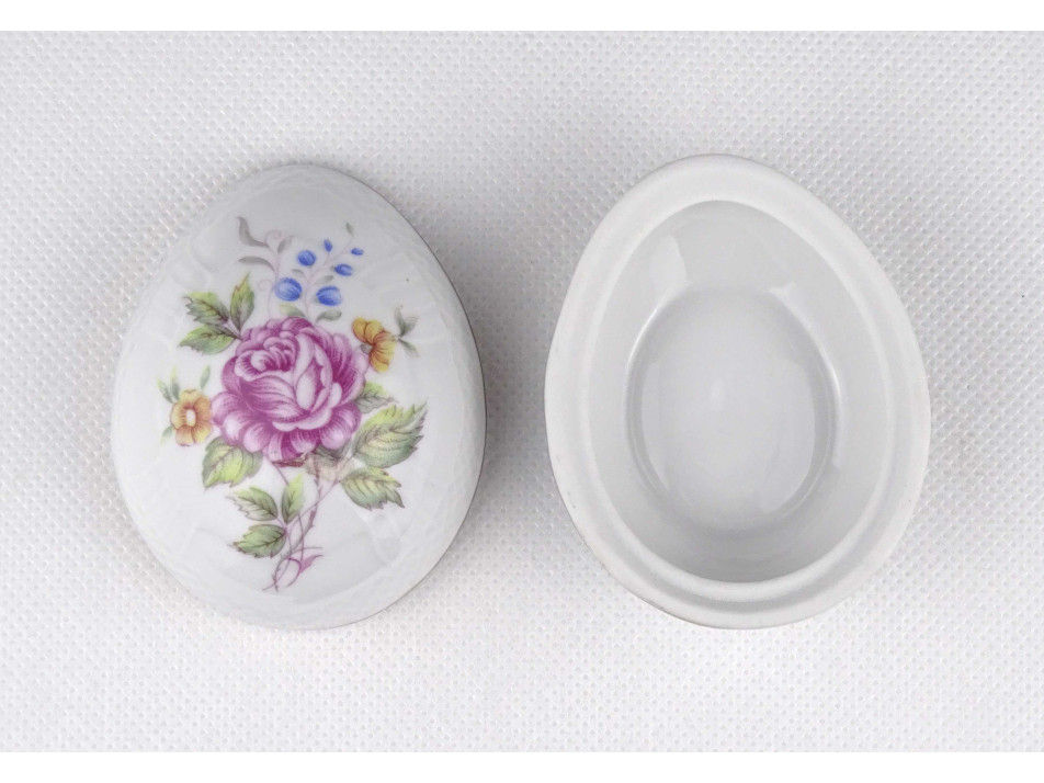 Hibátlan állapotú, virág mintás, tojás alakú porcelán gyűrűtartó, ékszertartó, bonbonier.
