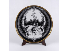 Hibátlan állapotú, aranyozott szélű, falra akasztási lehetőséggel rendelkező, jelzett porcelán dísztányér, falitányér.