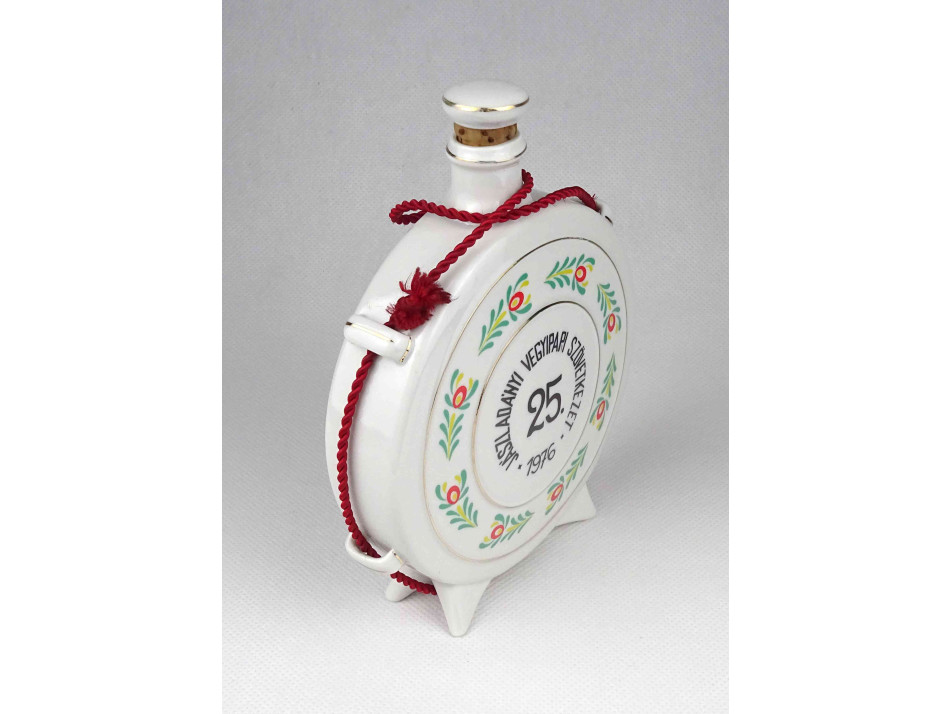 JÁSZLADÁNYI VEGYIPARI SZÖVETKEZET - Régi Hollóházi porcelán kulacs 16.5 cm