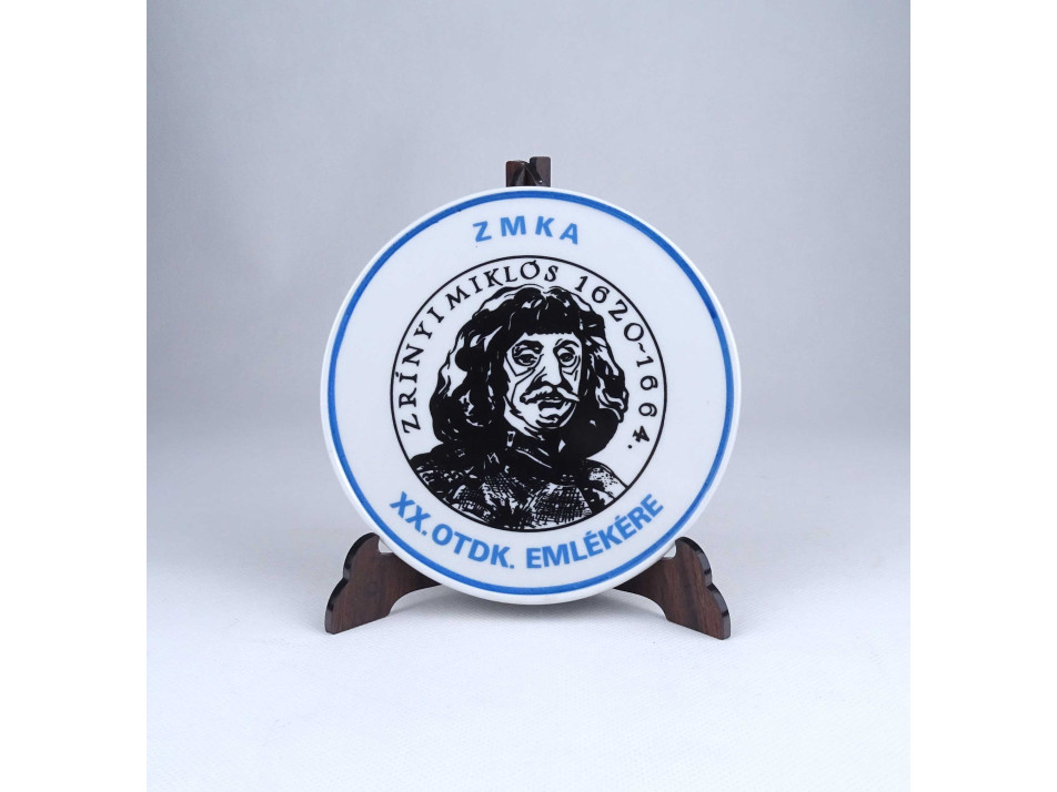 Régi, hibátlan állapotú, a Zrínyi Miklós Katonai Akadémia által megrendelt kör alakú Hollóházi porcelán emlékplakett. Rajta körben felirat és középen Zrínyi Miklós arcképe látható.