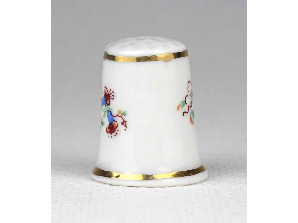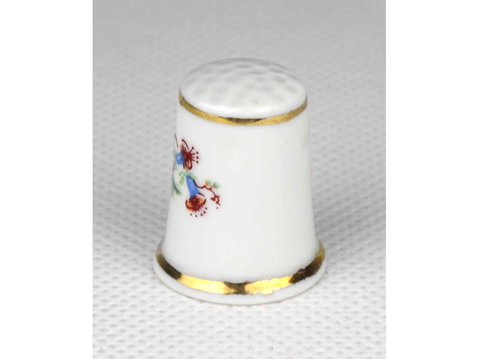 Hollóházi apró virágmintás aranyozott porcelán gyűszű