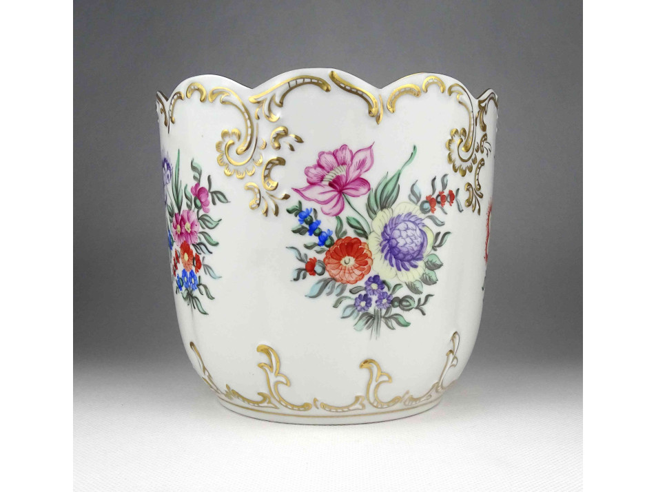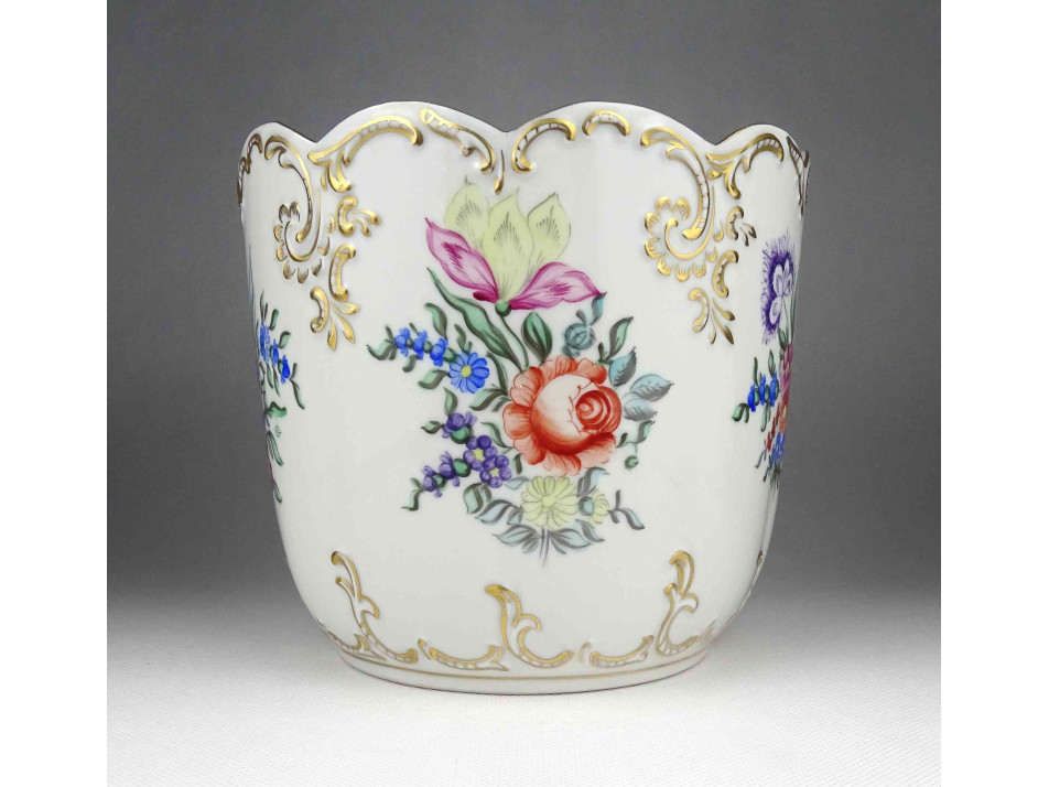 Nagyméretű kézzel festett barokkos Hollóházi porcelán kaspó