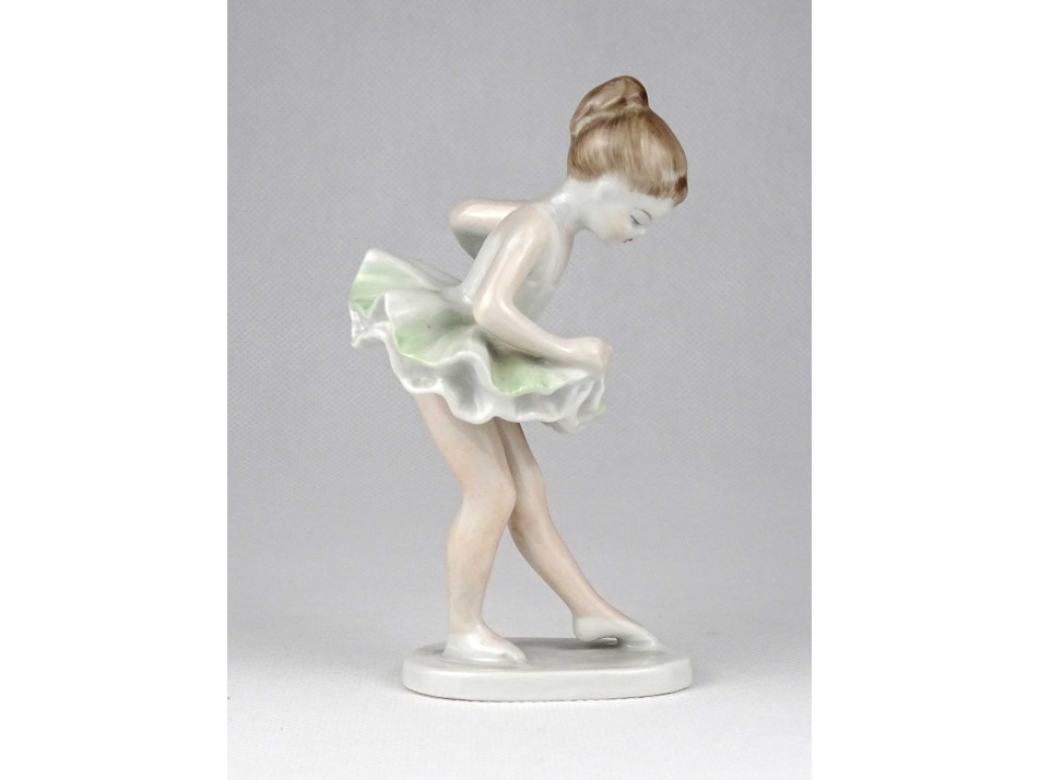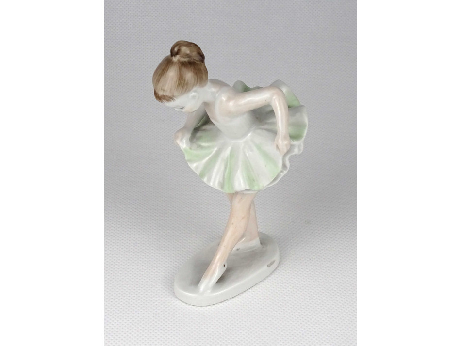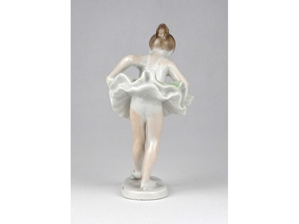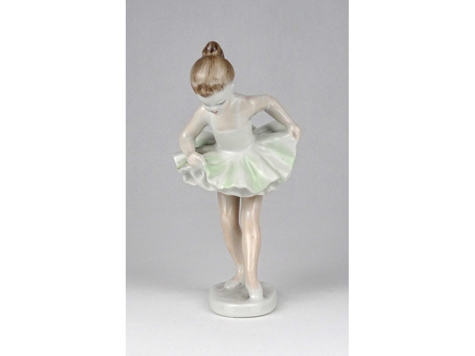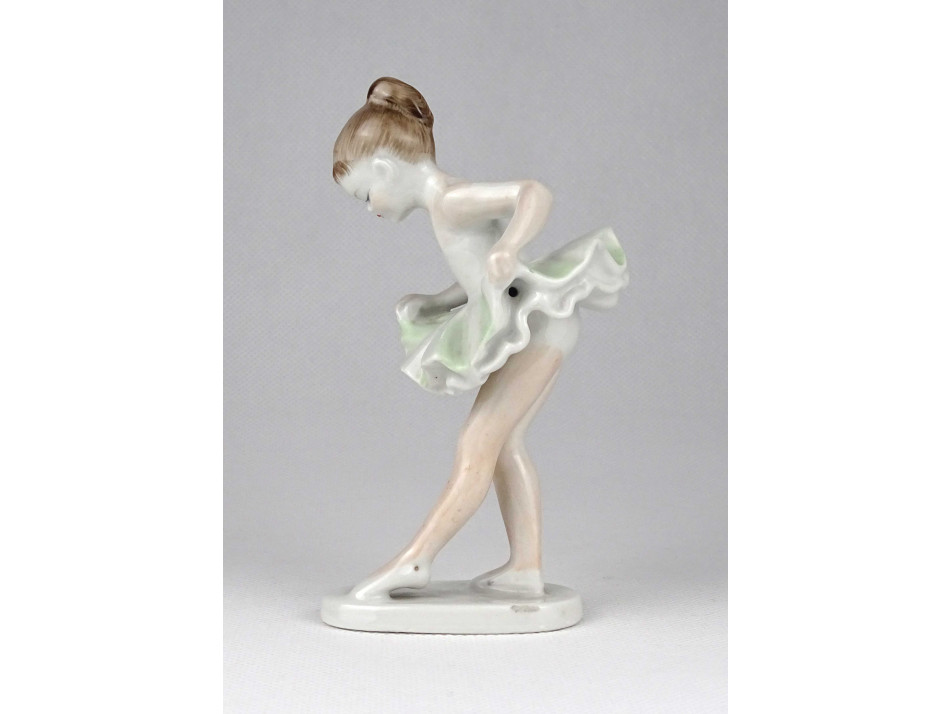 Hibátlan állapotú, jelzett Hollóházi porcelán balerina, táncoló kislány figura talapzaton.