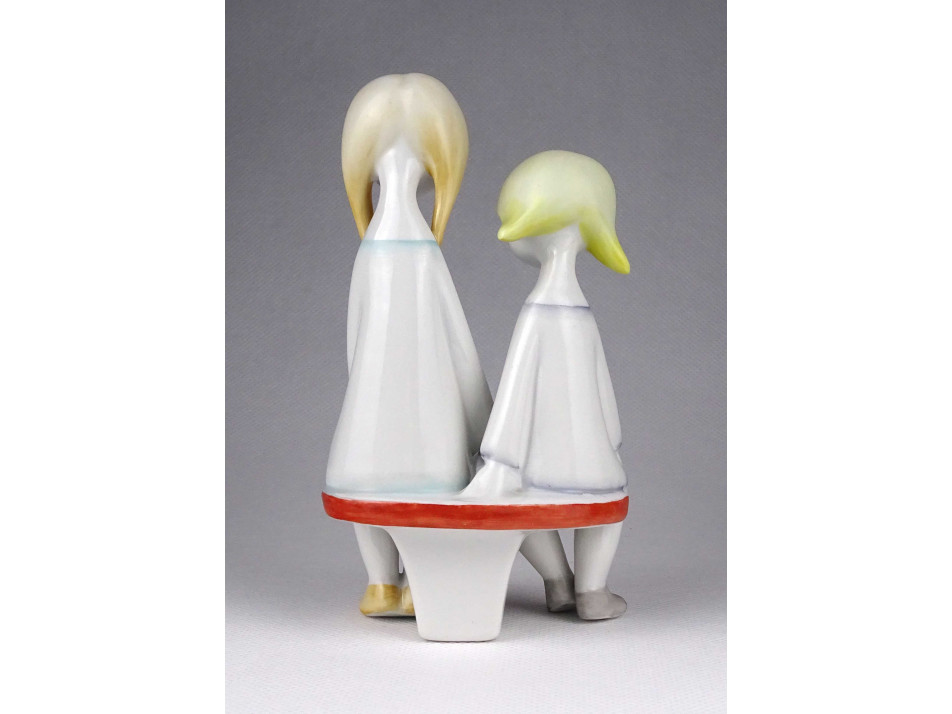 Hibátlan állapotú, jelzett Hollóházi porcelán figura. Mesét olvasó kislányok.