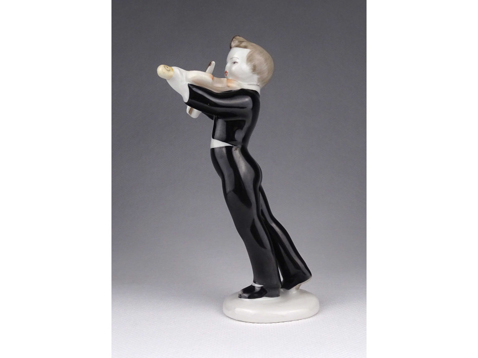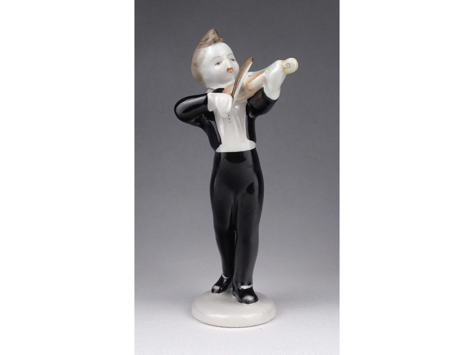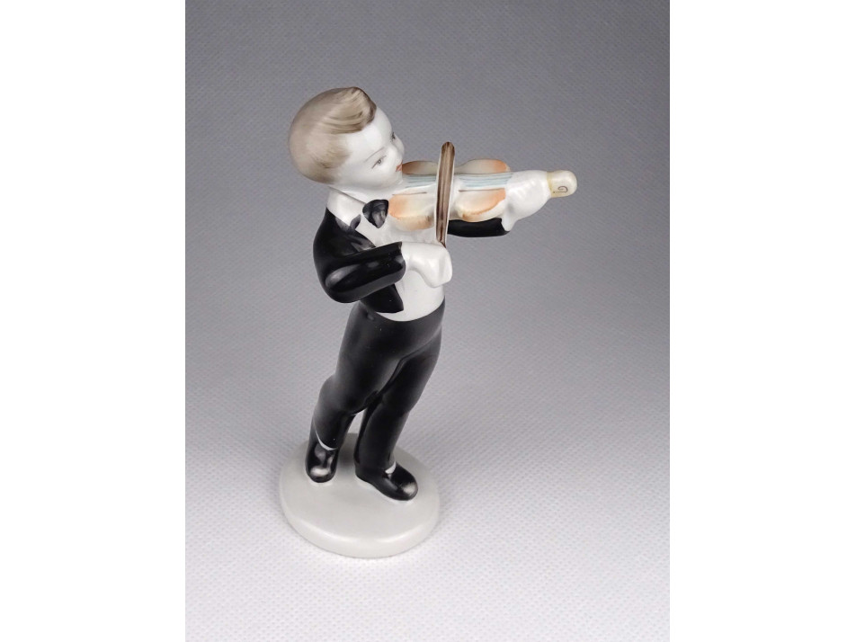 Régi Hollóházi porcelán figura hegedülő fiú 14 cm