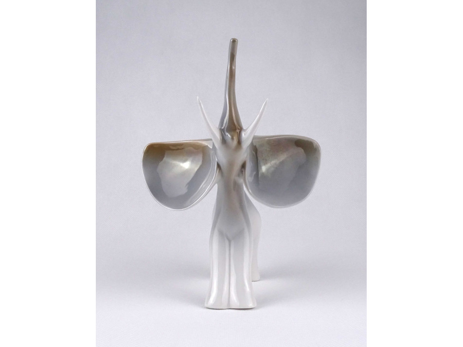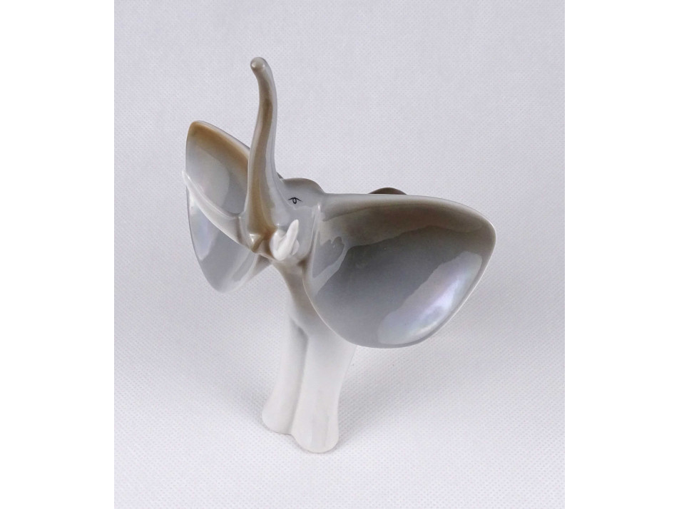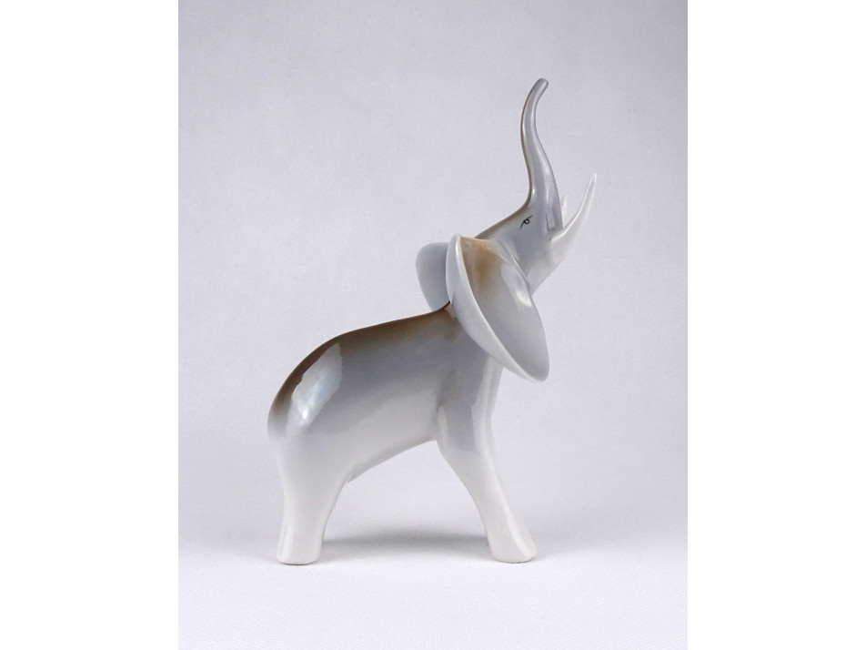 Régi, hibátlan állapotú, jelzett Hollóházi porcelán elefánt szobor. Felfelé álló ormányú, szerencsehozó elefánt.