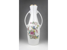 Régi, hibátlan állapotú, kék virágmintával díszített Hollóházi porcelán hamutál és kisváza. Futball relikvia, emléktárgy.