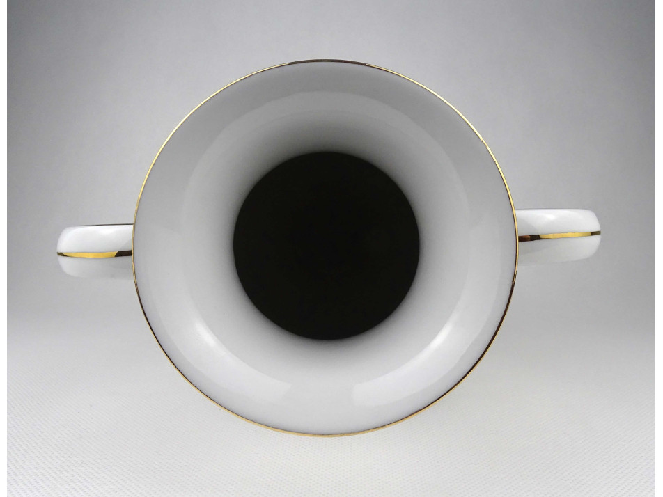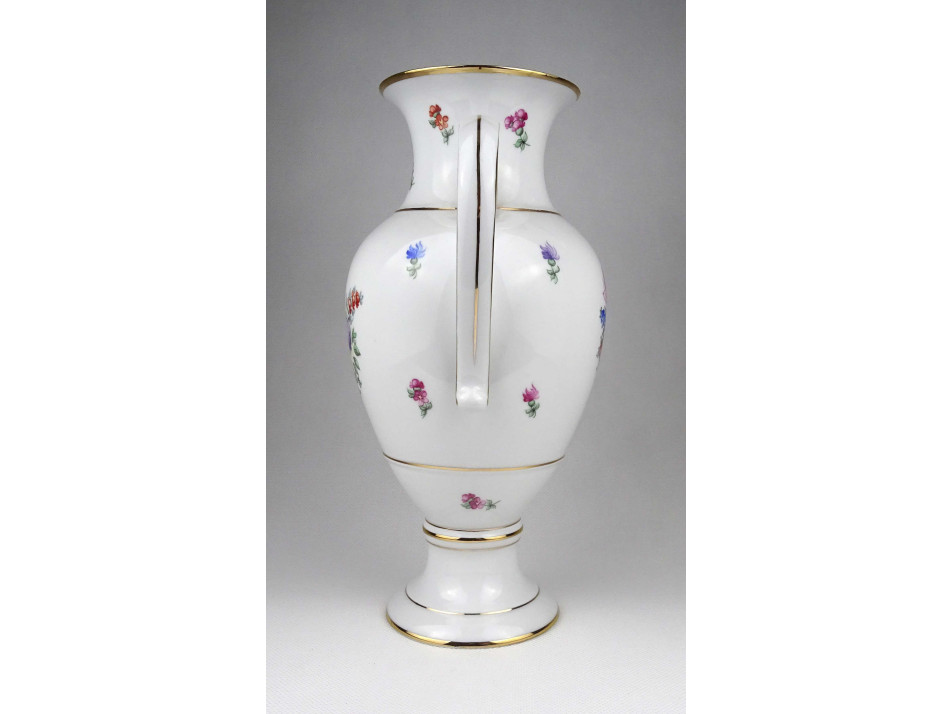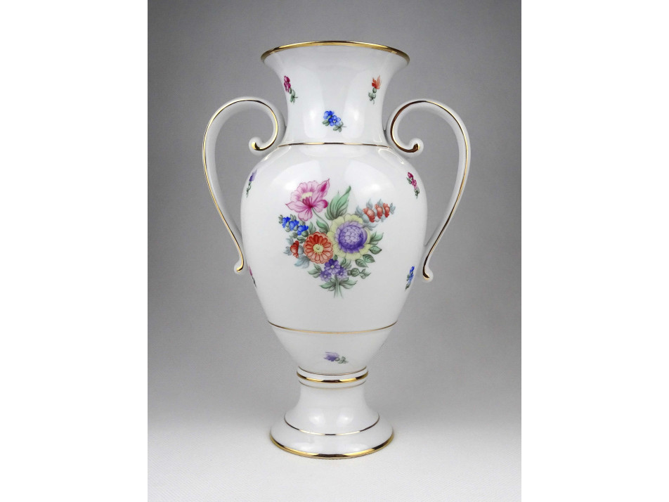 Nagyméretű, virágmintás, aranyozott Hollóházi porcelán díszváza, amfóra váza.