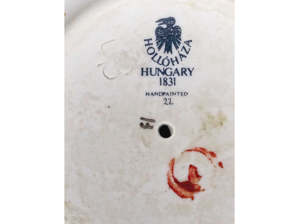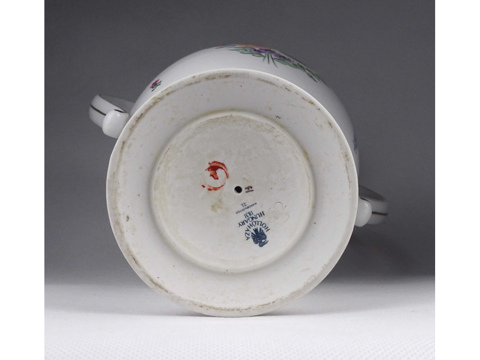 Nagyméretű virágmintás Hollóházi porcelán két füles amfóra váza urna váza 28.5 cm