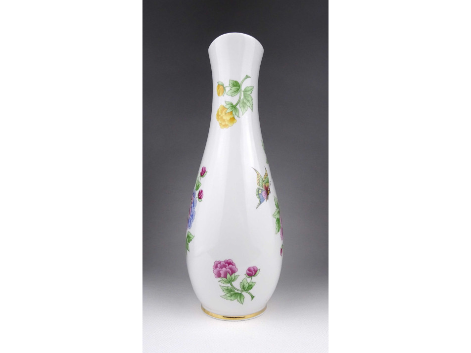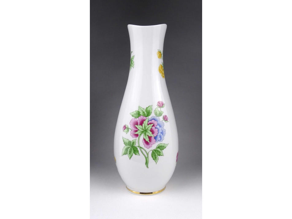Hortenzia mintás, aranyozott Hollóházi porcelán váza 25 cm