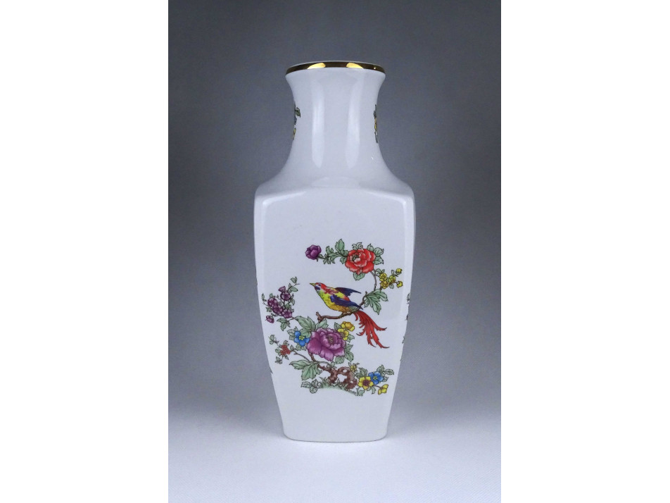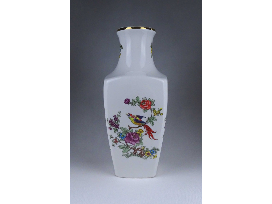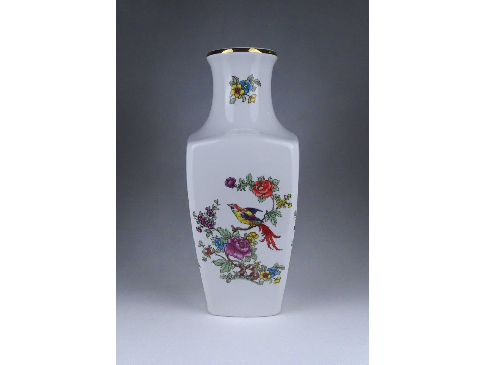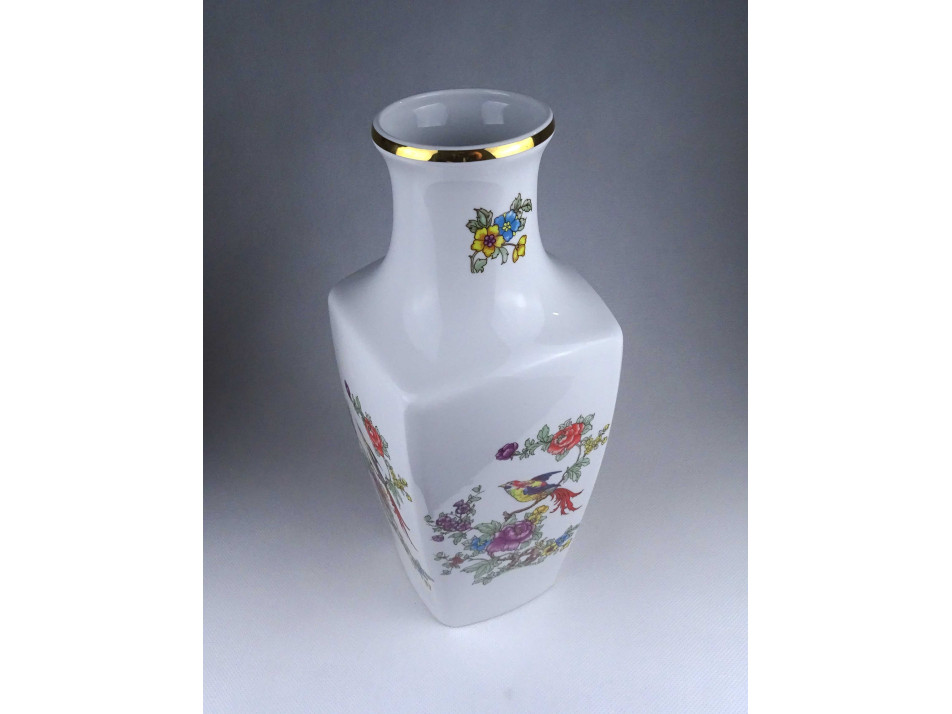 Hibátlan állapotú, nagyméretű, paradicsommadár mintás, aranyozott peremű, Hollóházi porcelán váza.
