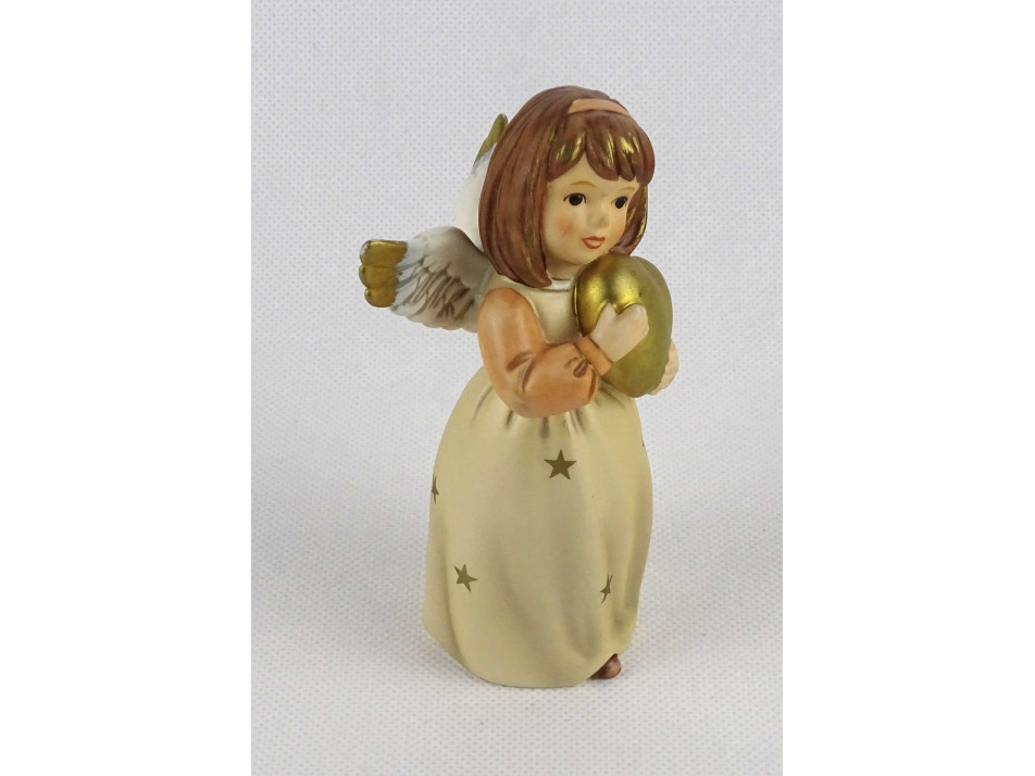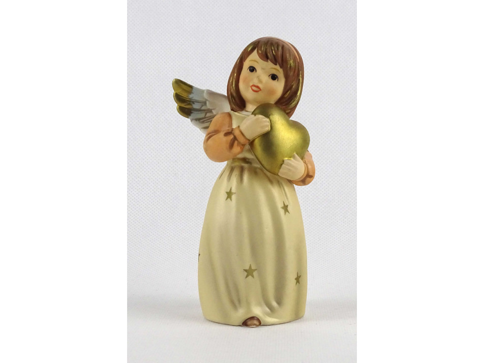 Hibátlan állapotú, kézzel festett, arany szívet ölelő jelzett Goebel porcelán angyal figura.