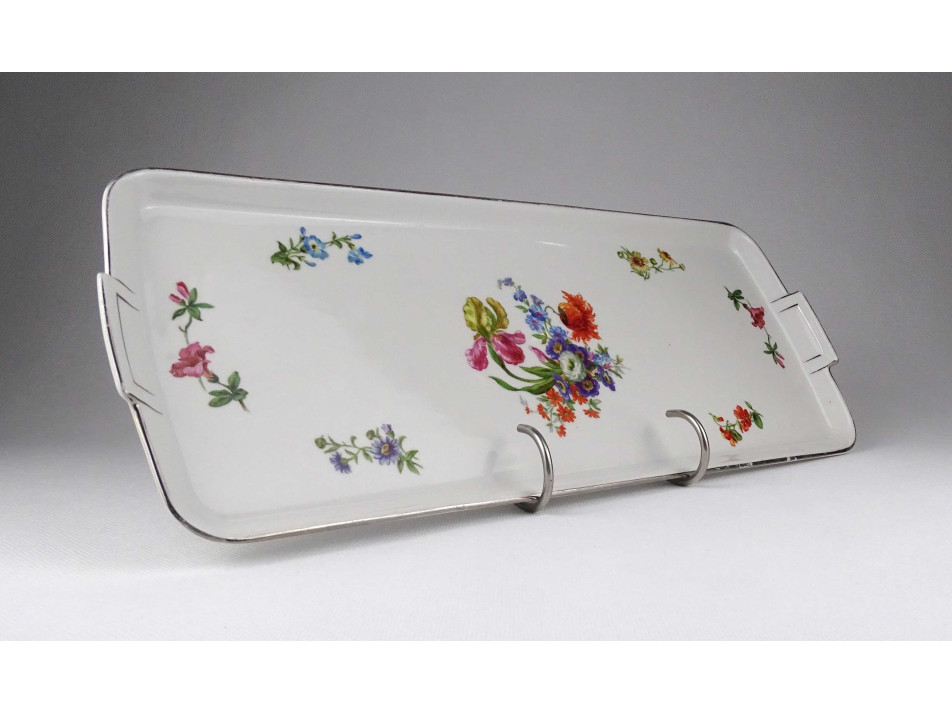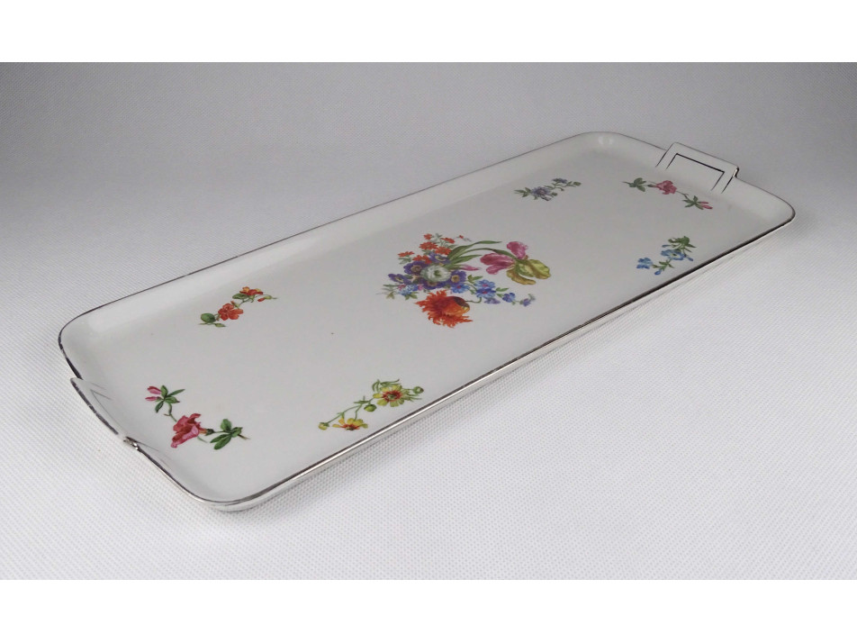 Régi virágmintás Zsolnay süteményes kínáló tálca 40 x 16 cm