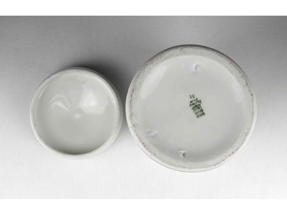 Hibátlan állapotú, nagyméretű gyógyszertári patika edény, tároló. Vastagfalú Zsolnay porcelán tégely, porcelán fedéllel.