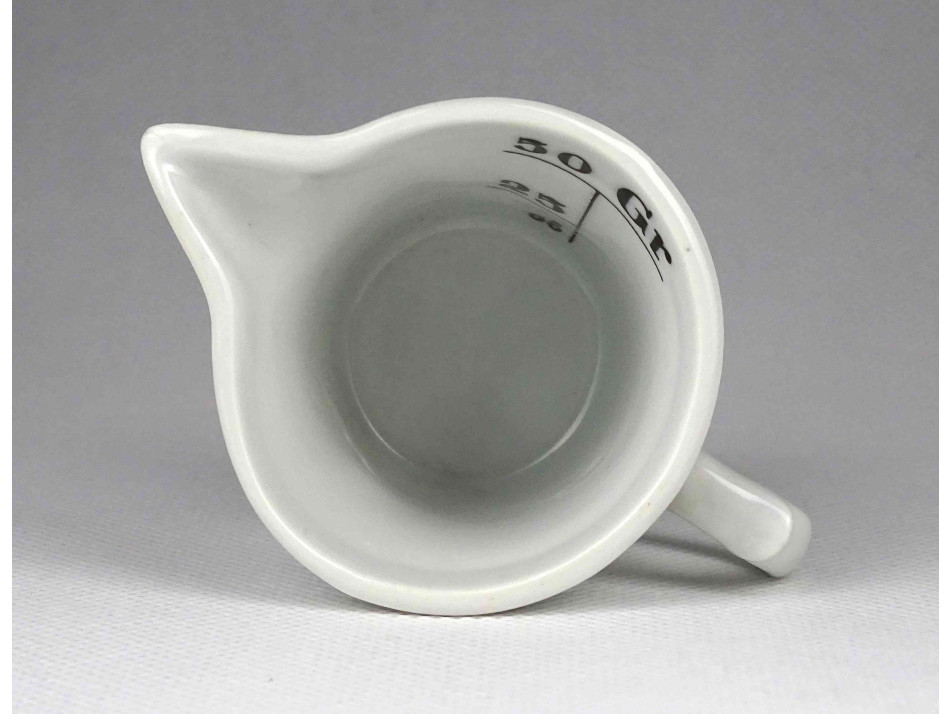 Régi gyógyszertári Zsolnay porcelán mérőedény kancsó 50 GR