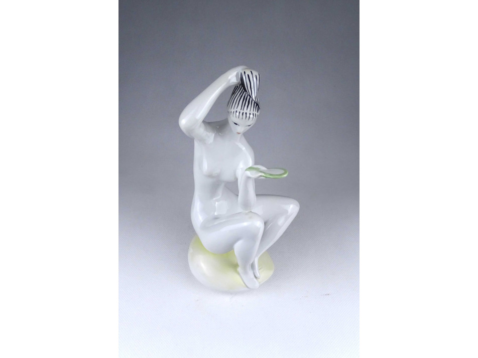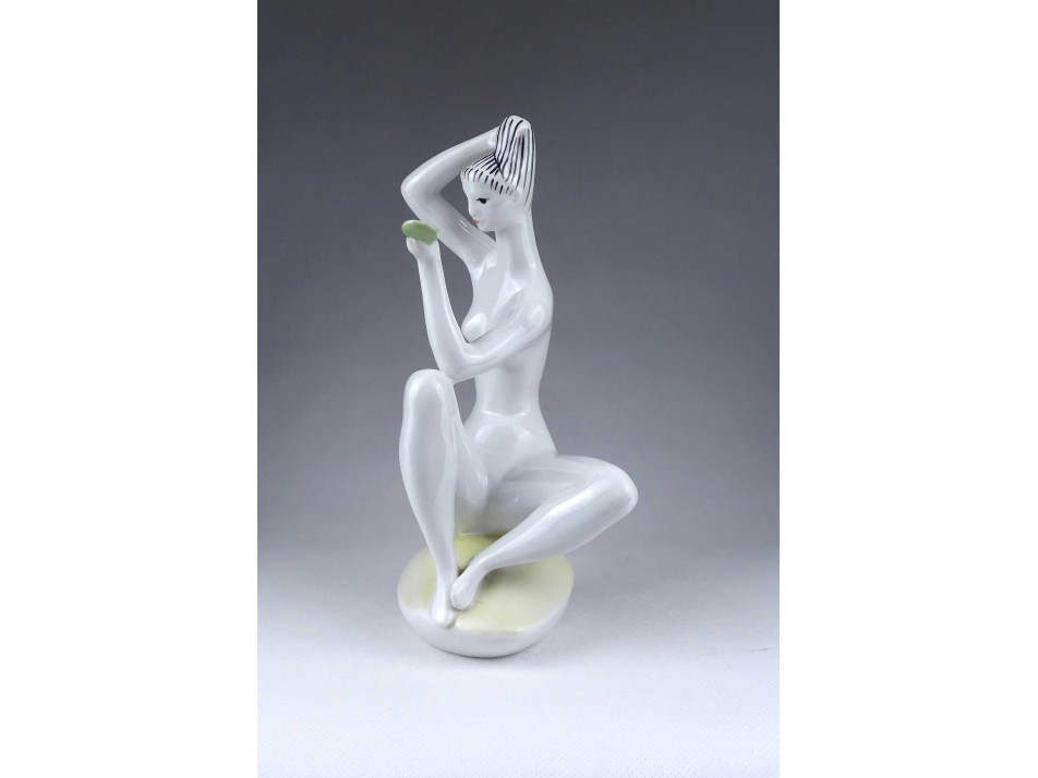 Zsolnay porcelán fésülködő akt szobor Török János tervezte 22.5 cm