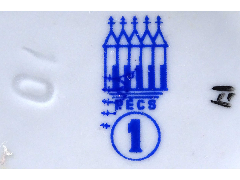 Alján kék Zsolnay öttornyú márkajelzés: