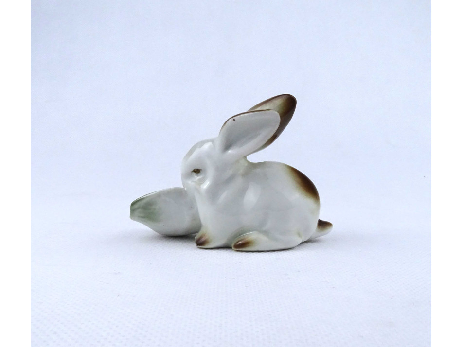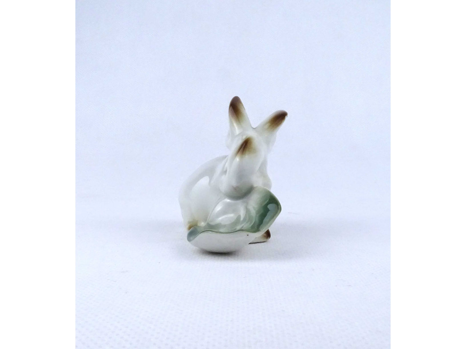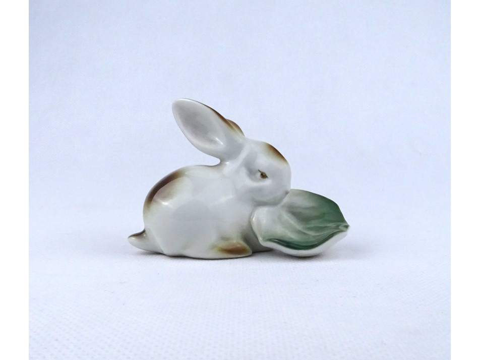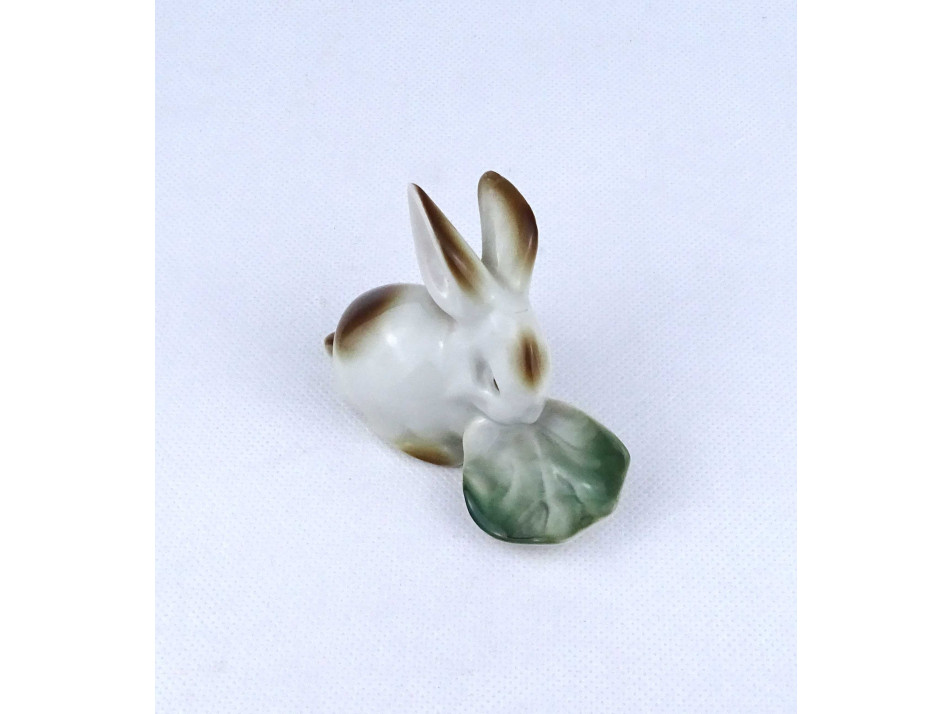 Káposztalevelet rágó nyúl nyuszi Zsolnay porcelán figura