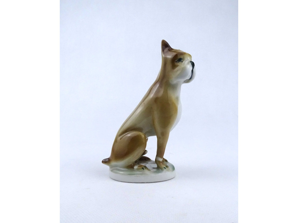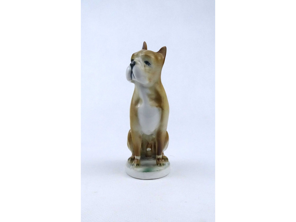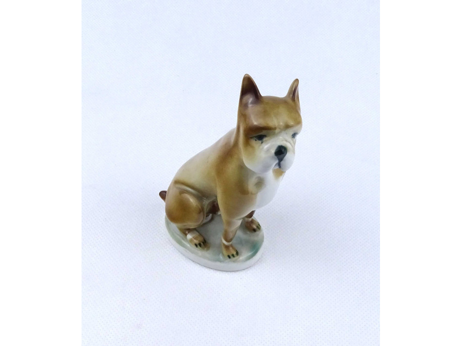 Régi boxer kutya Zsolnay porcelán figura 12.8 cm