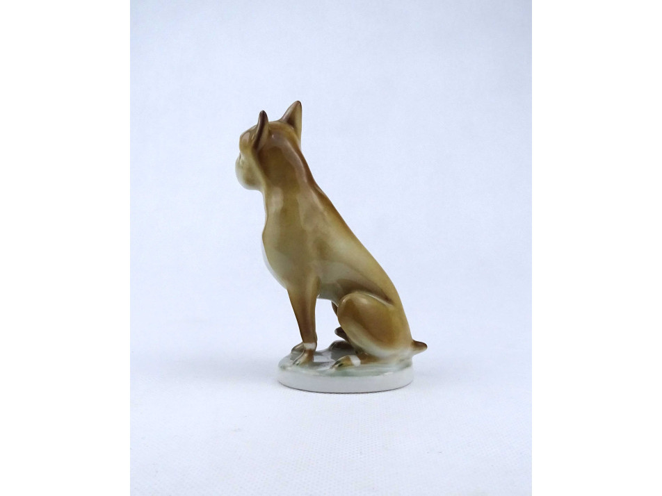 Régi hibátlan állapotú, kézi festésű, talapzaton ülő boxer kutya, Zsolnay porcelán figura.
